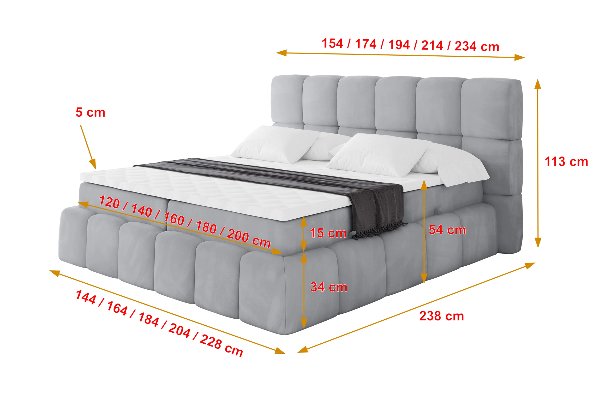 Boxbett AURI Hellgrau - Monolith 84 160x200 cm