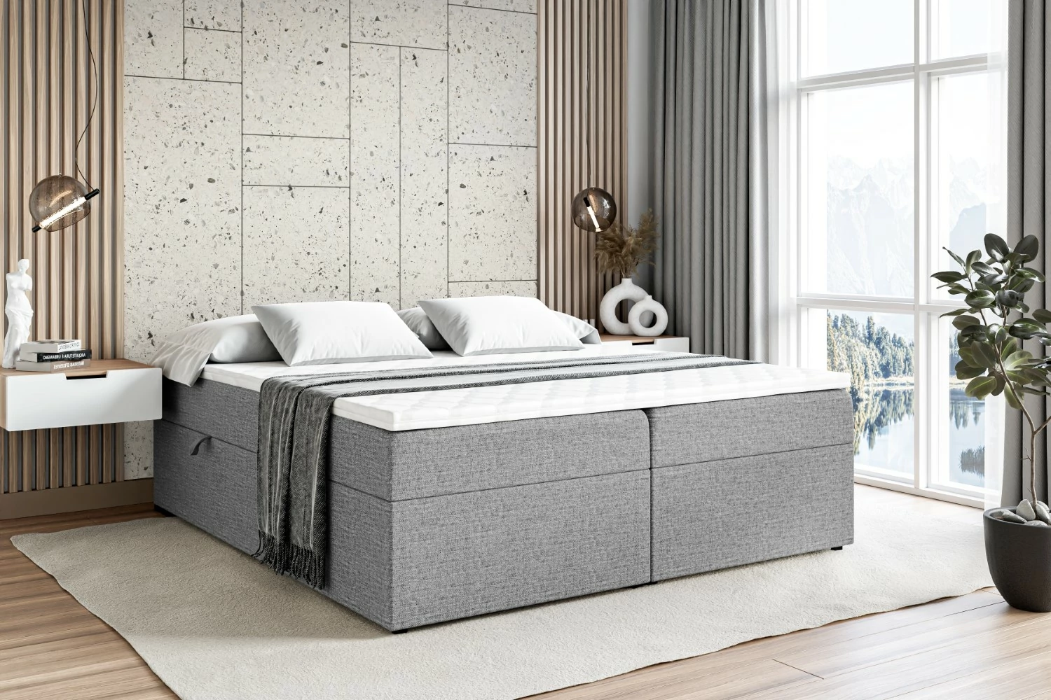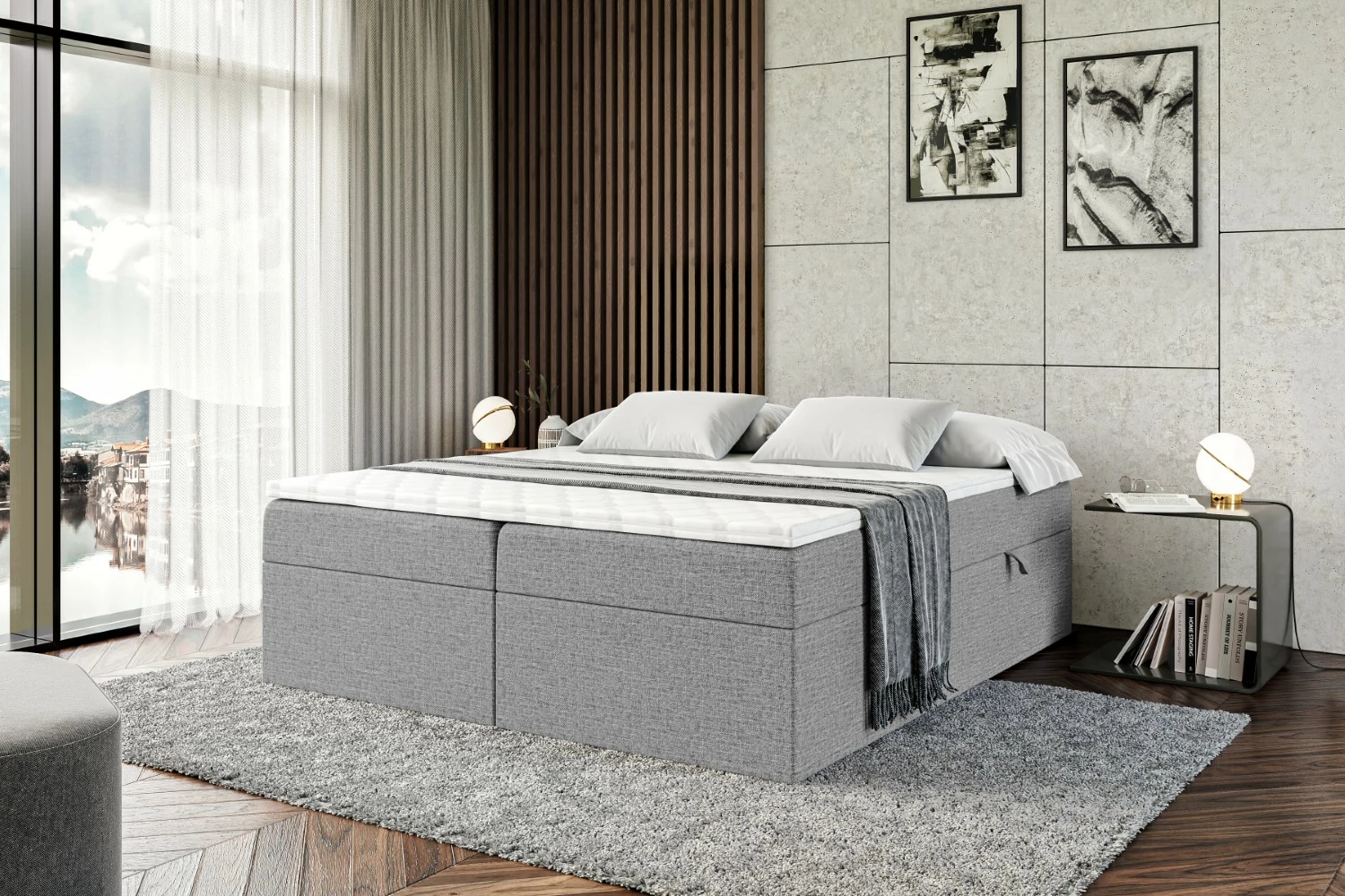 Praktisches Boxspringbett mit Stauraum für ein aufgeräumtes Schlafzimmer