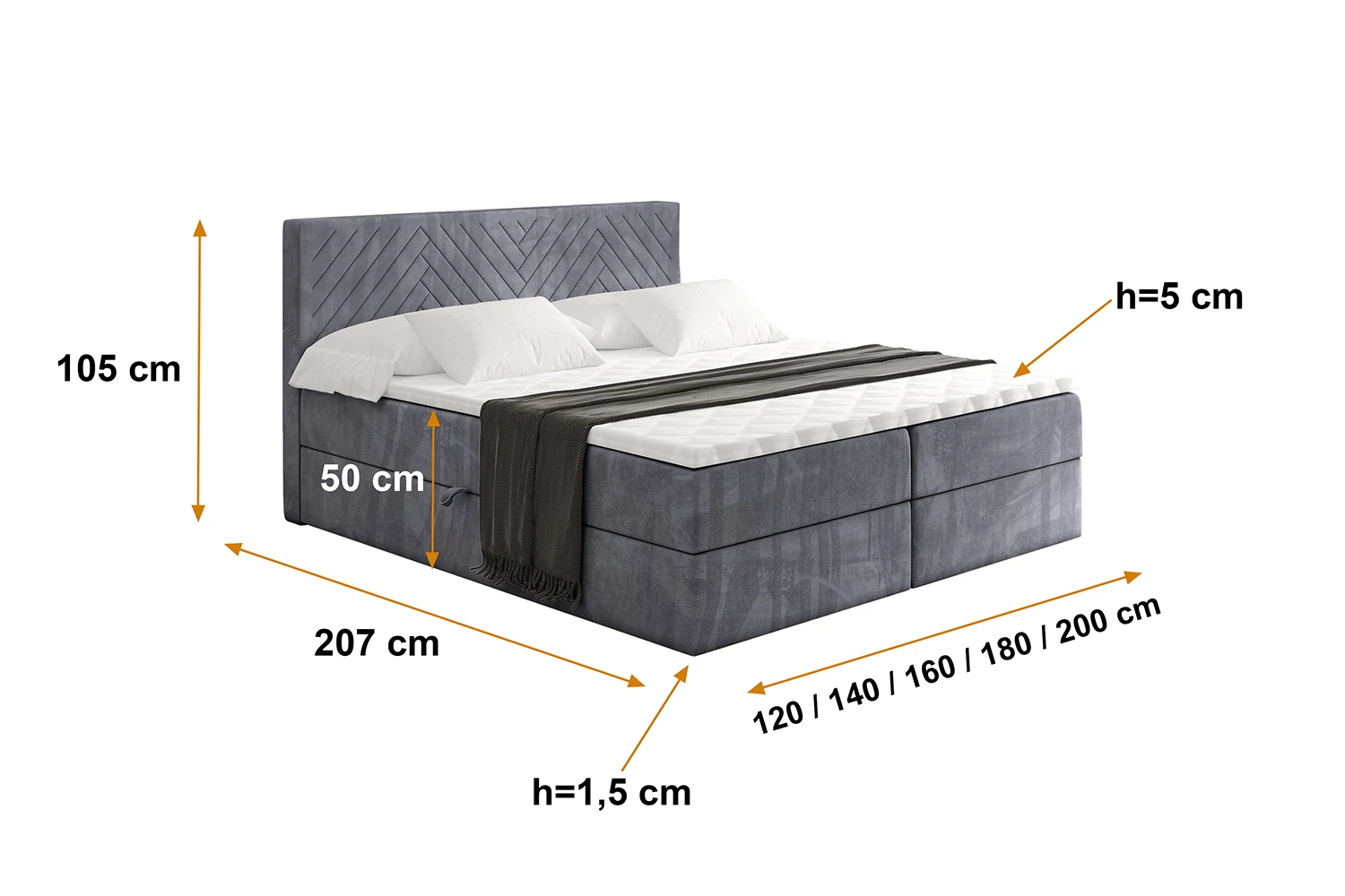 Boxbett VEXA Dunkelgrau - Casablanca 2315 120x200 cm