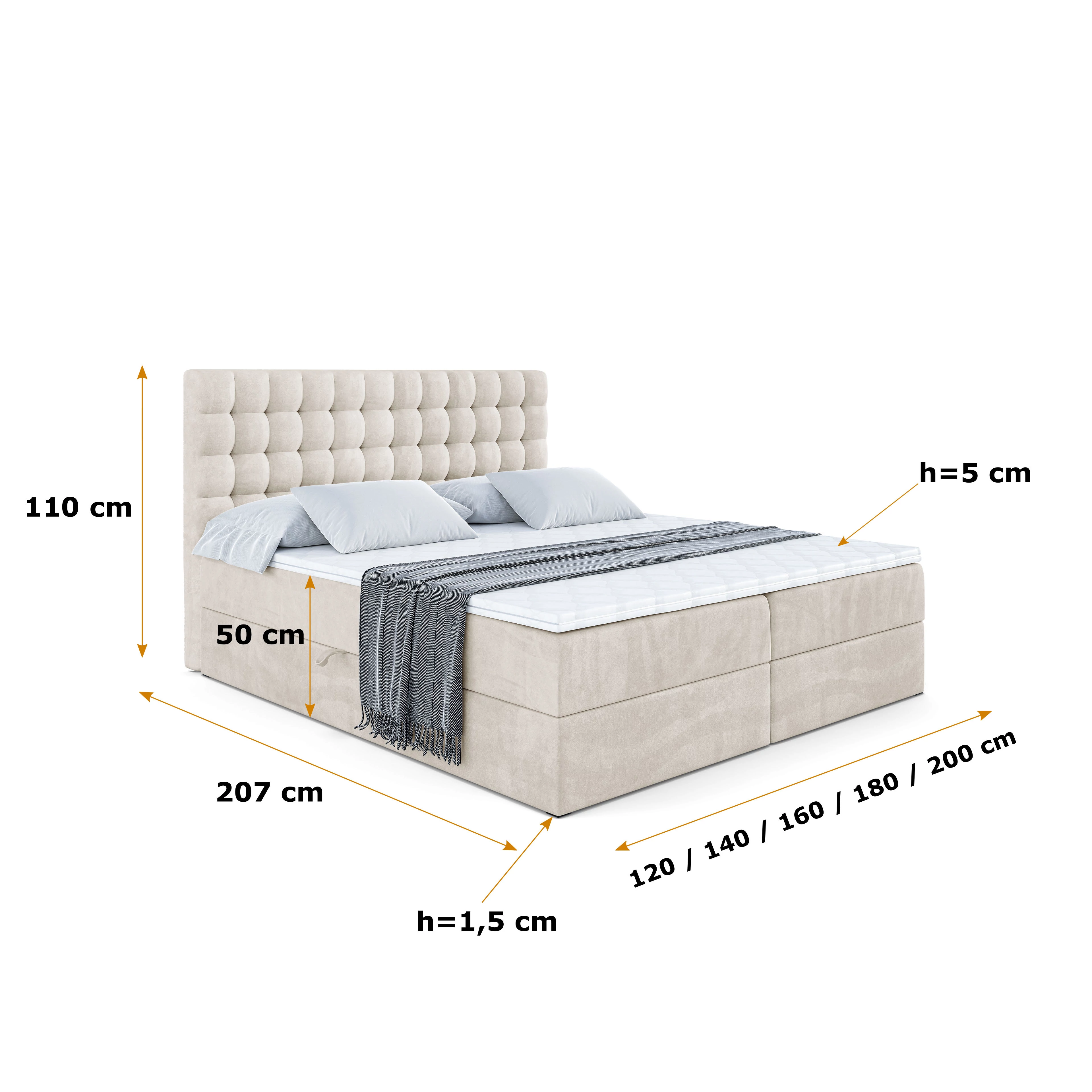 Die Möbel werden in Paketen zur Selbstmontage geliefert. Im Lieferumfang ist das Bett mit Topper enthalten. Die auf dem Foto abgebildeten Kissen, das Bettlaken und die Decke dienen ausschließlich der Dekoration und sollen Ihnen helfen, sich das Bett in Ihrem Schlafzimmer besser vorzustellen.
