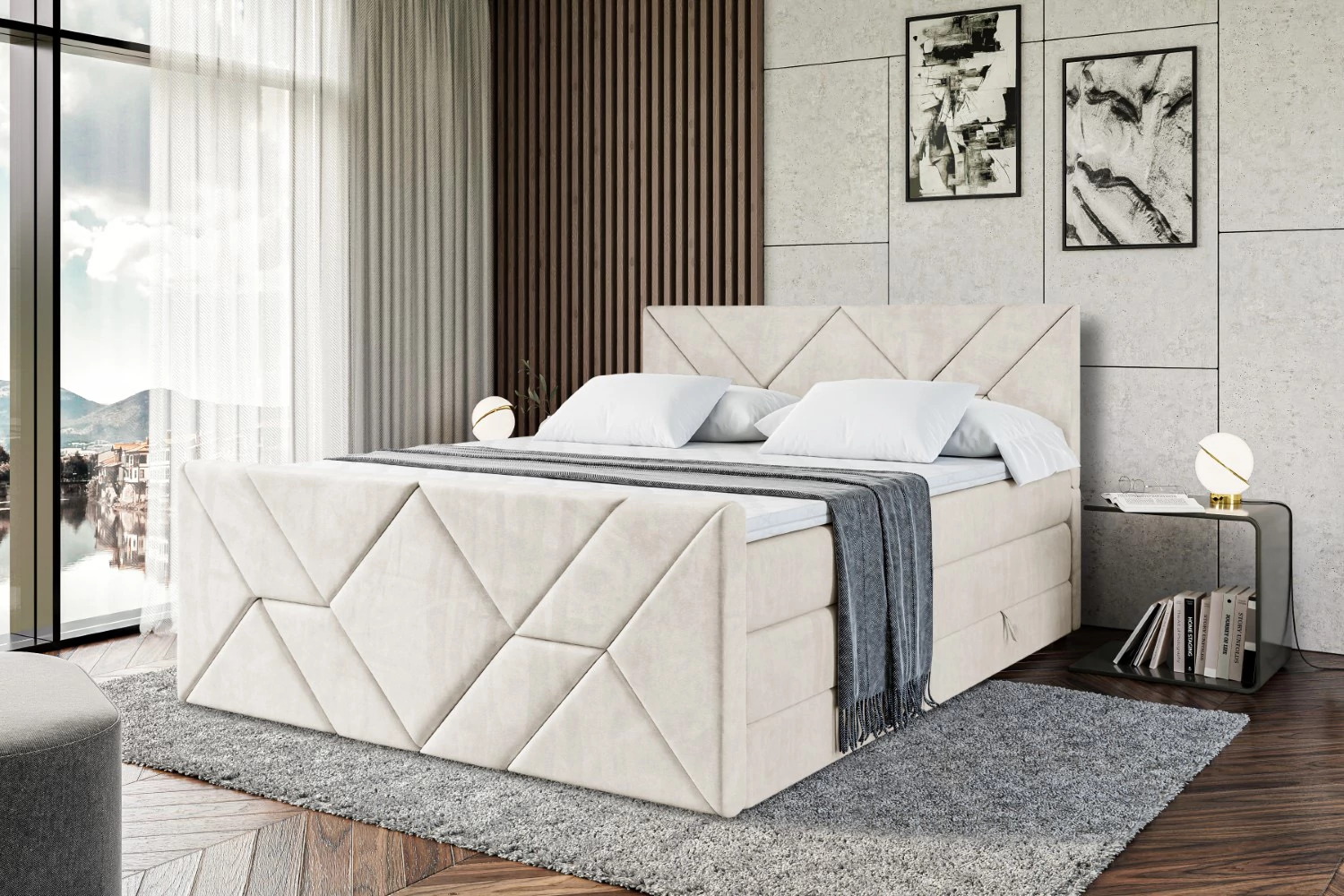 Boxspringbett BARWA-Z KING Beige - Casablanca 2301 120x200 cm