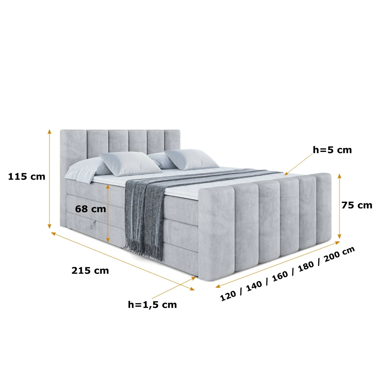 Produktdetails Boxspringbett BOXI1-Z KING Hellgrau - Monolith 84 120x200 cm