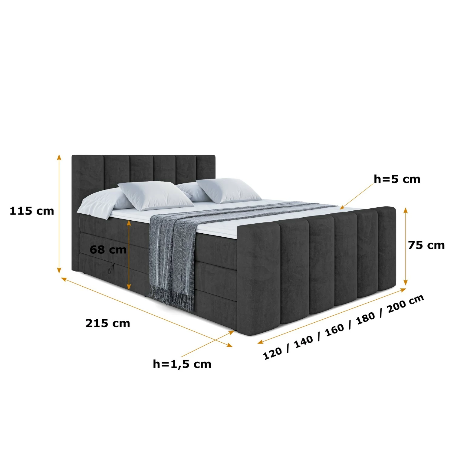 Die auf dem Foto abgebildeten Kissen, das Bettlaken und die Decke dienen ausschließlich der Dekoration und sollen Ihnen helfen, sich das Bett in Ihrem Schlafzimmer besser vorzustellen.