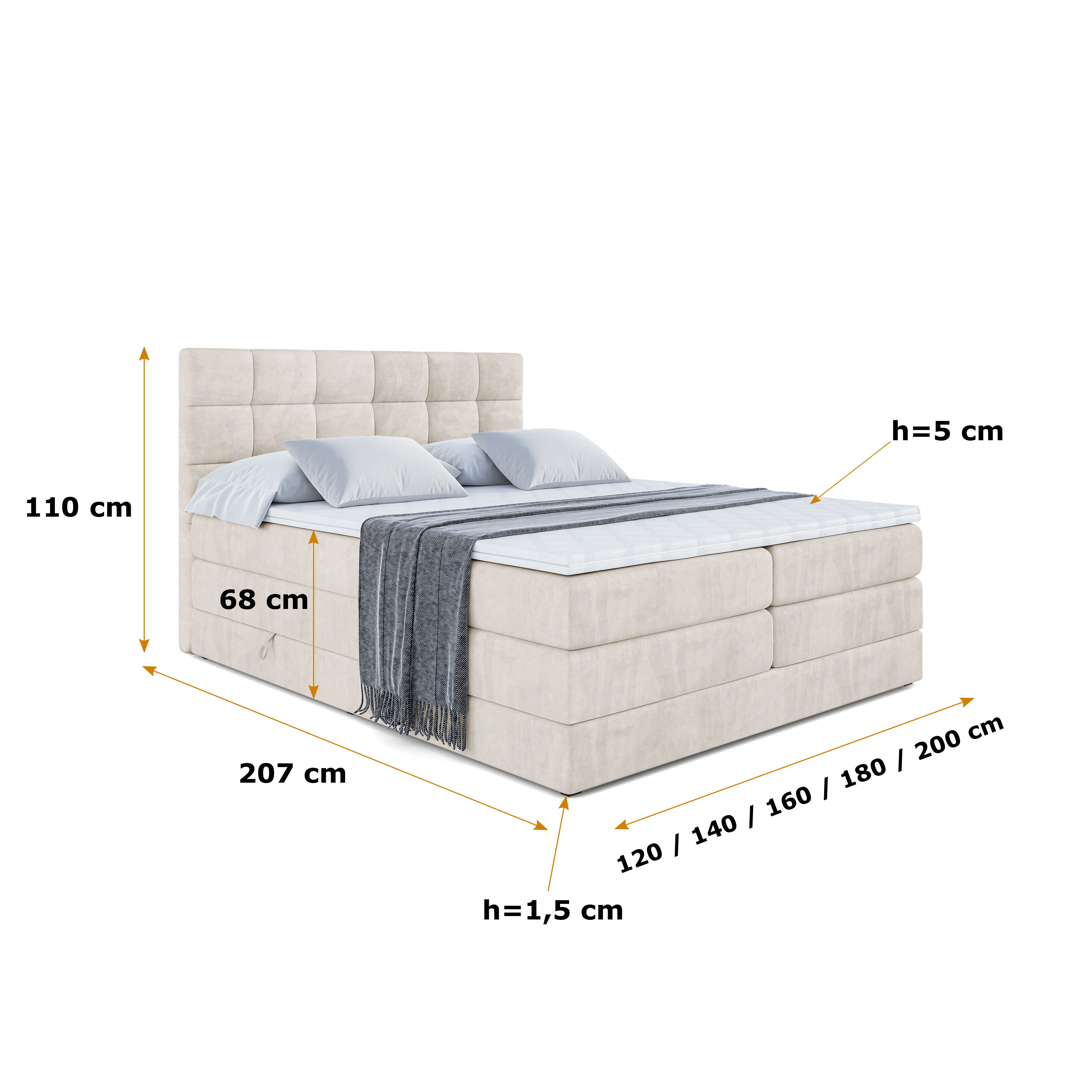 Boxspringbett BRUGO KING Beige - Casablanca 2301 120x200 cm