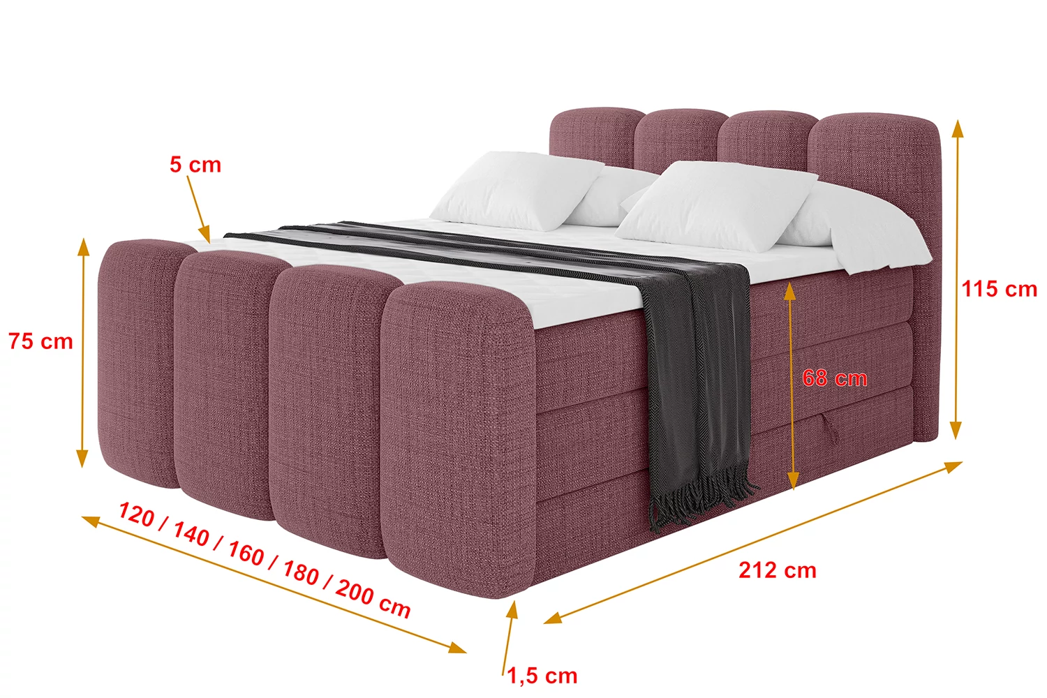 Boxspringbett NINA-Z KING Altrosa - Aragon 69 120x200 cm