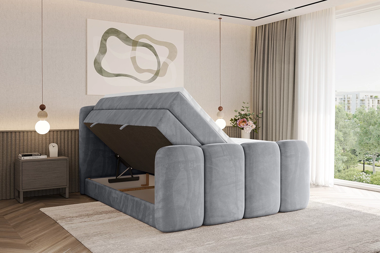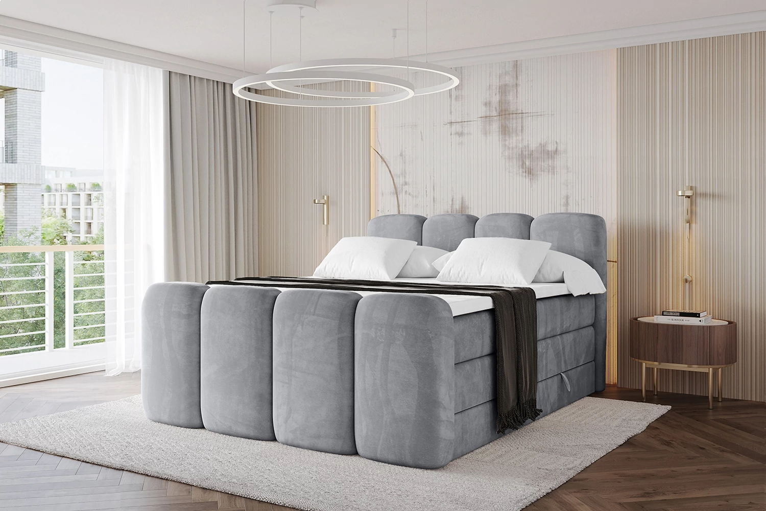 Boxspringbett NINA-Z KING Hellgrau - Monolith 84 180x200 cm