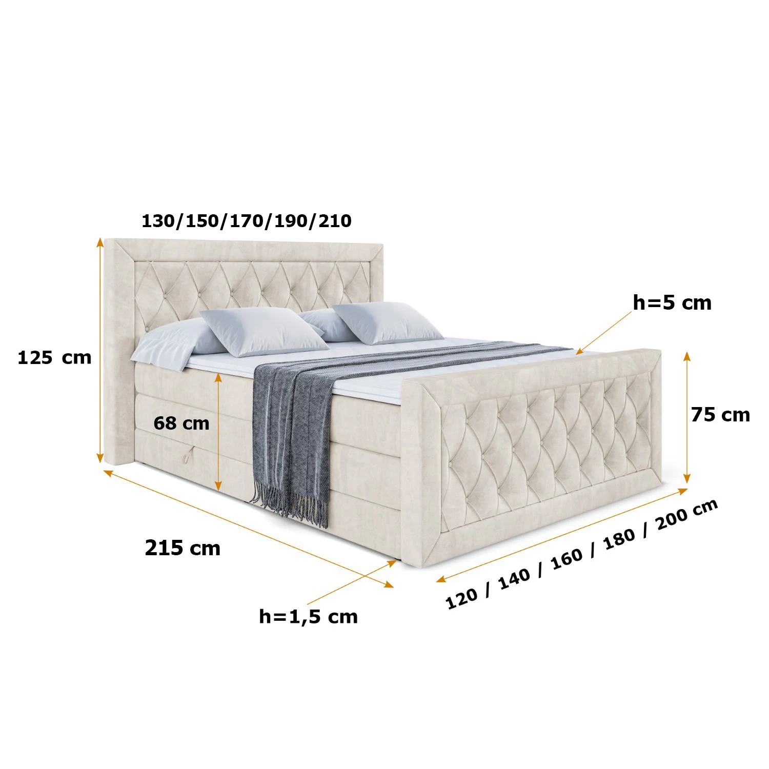 Boxspringbett NOEL-Z KING Beige - Casablanca 2301 120x200 cm