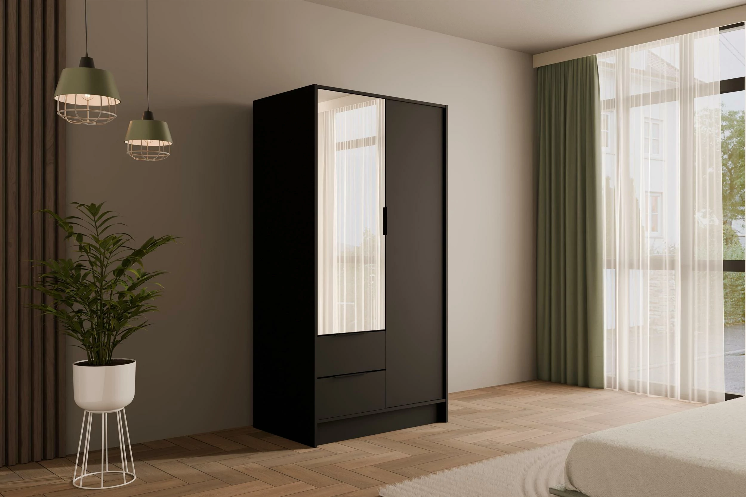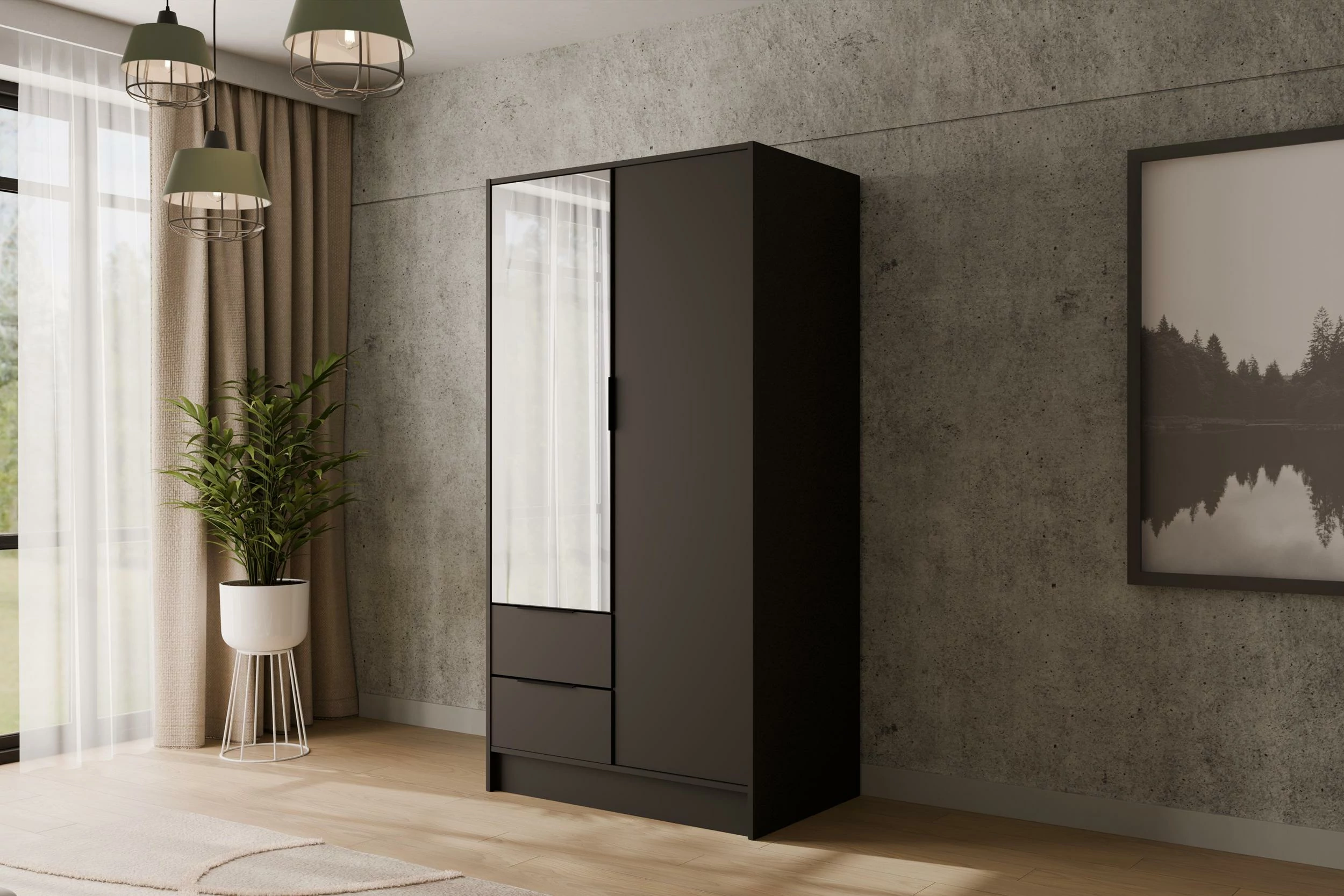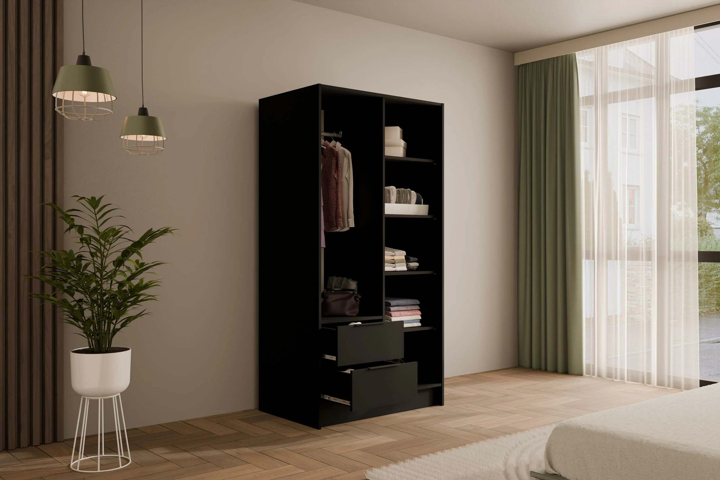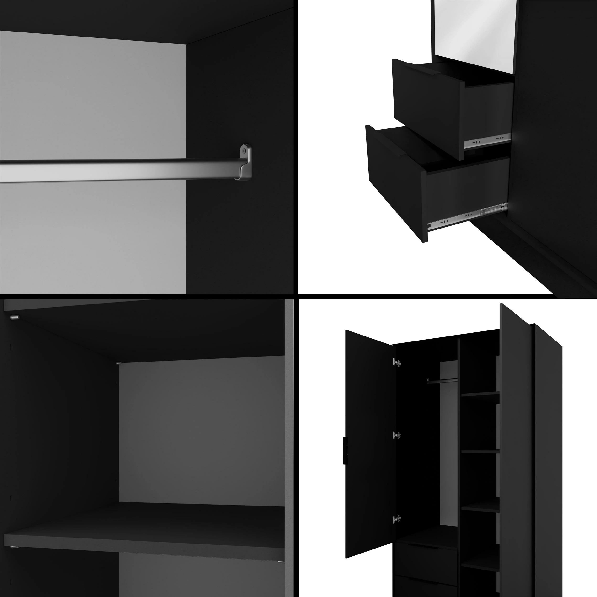 Drehtürenschrank KOLIN Schwarz 102 cm x 51 cm x 200 cm