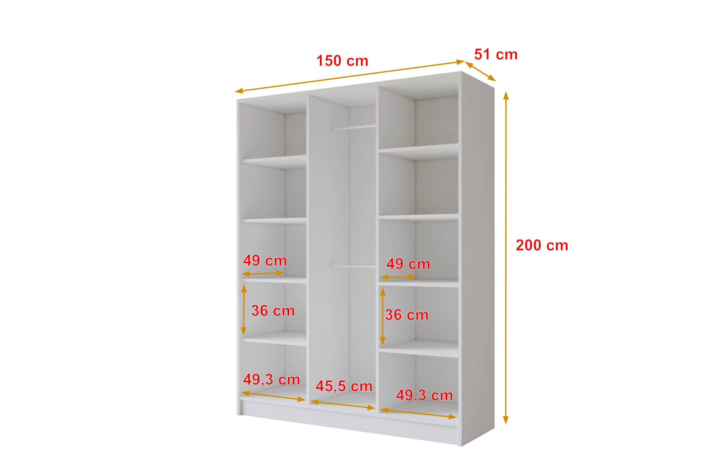 150 cm x 51 cm x 200 cm