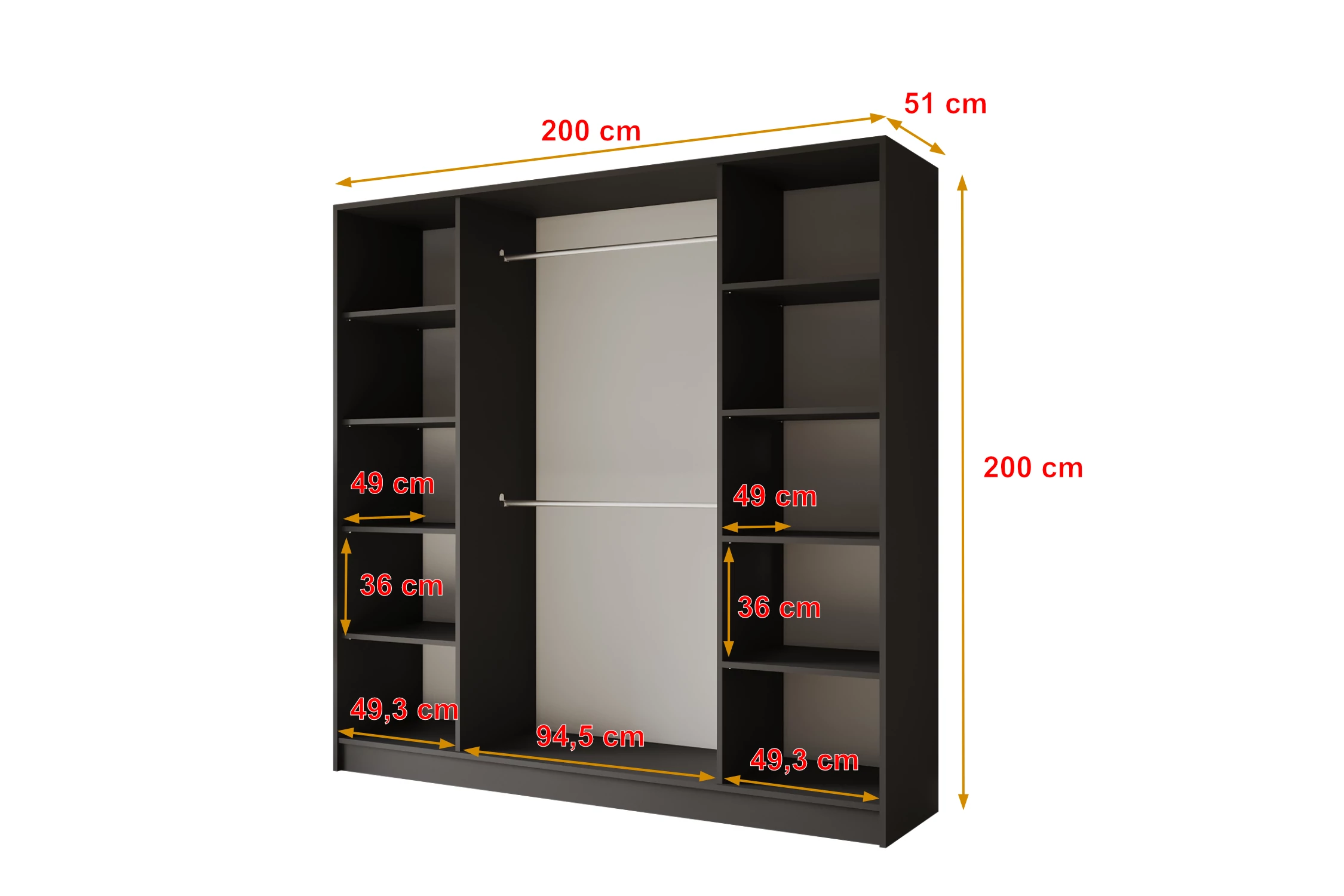 Schwarz 200 cm x 51 cm x 200 cm