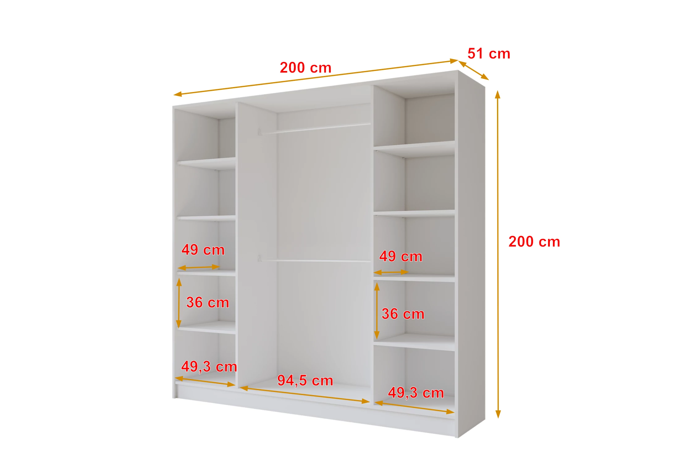Weiß 200 cm x 51 cm x 200 cm