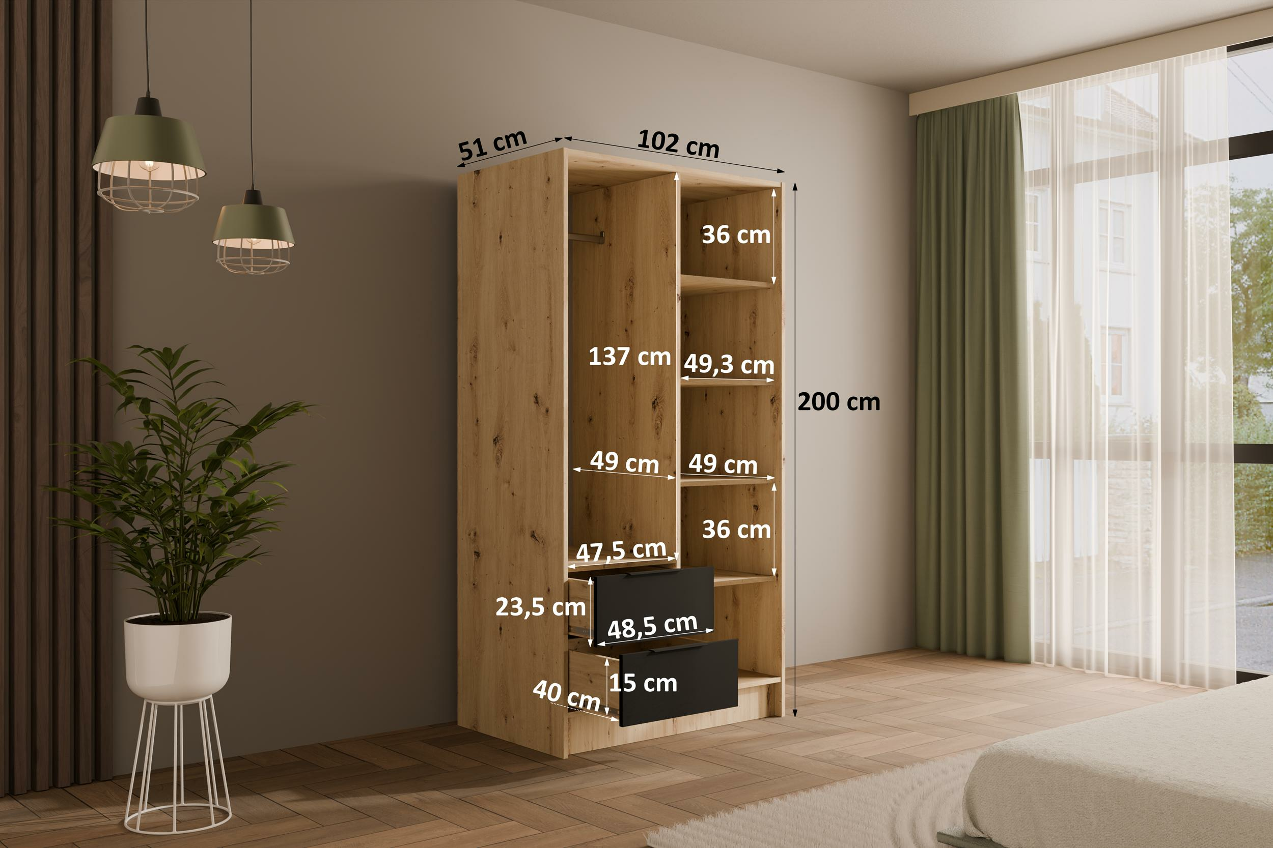 Drehtürenschränke NELIA Eiche Artisan + Schwarz + Eiche Artisan 102 cm x 51 cm x 200 cm