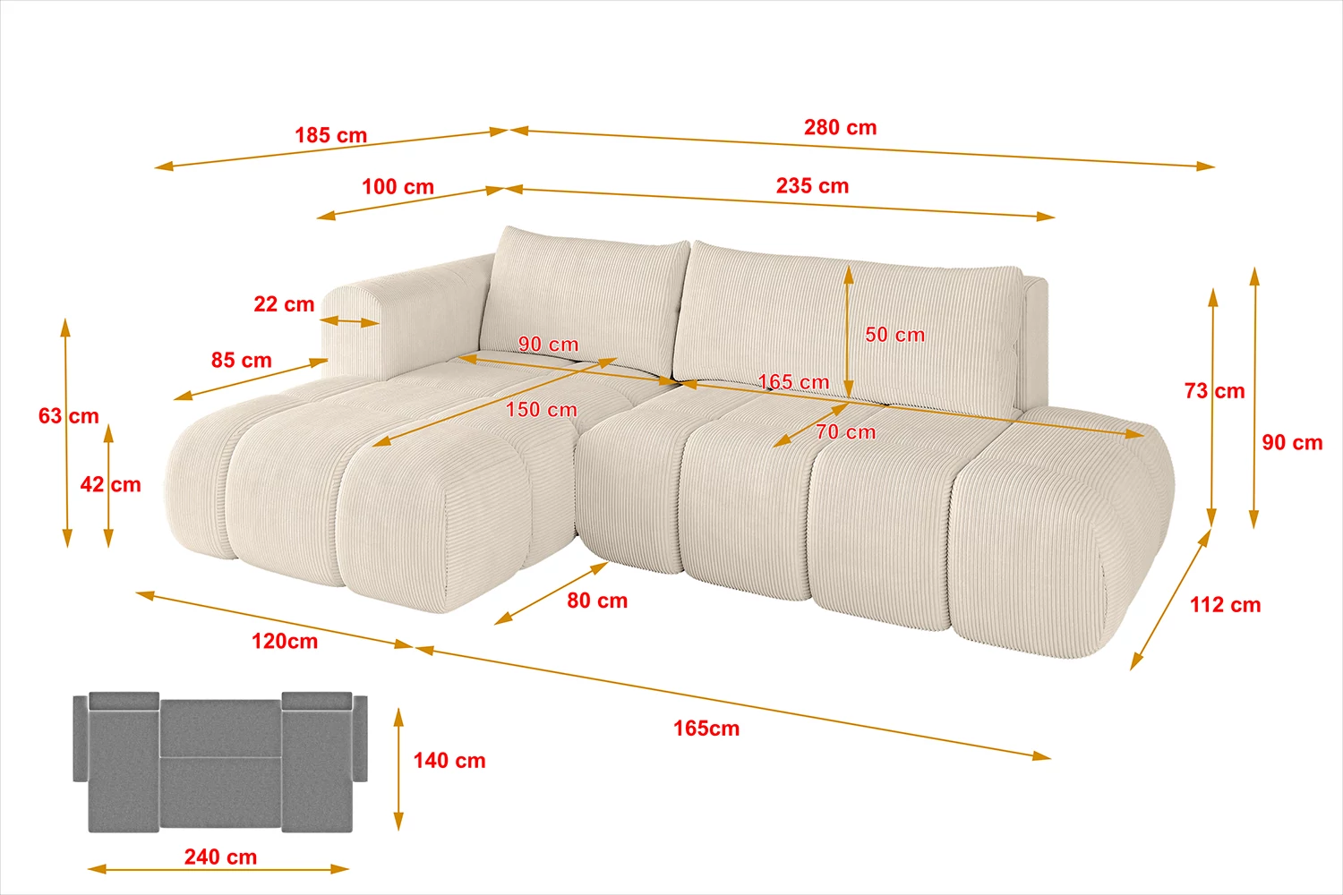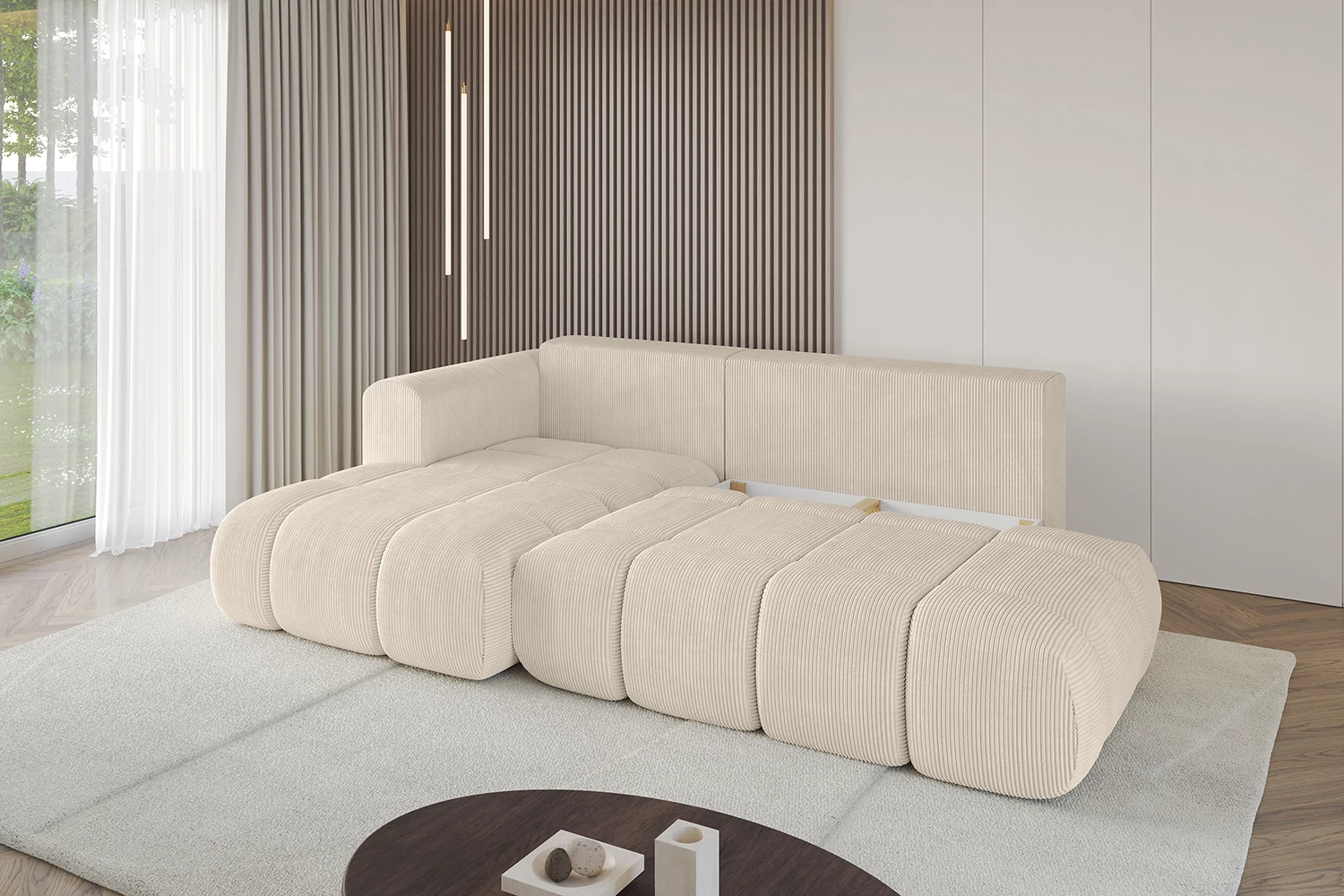 Ein modernes Polstersofa mit Schlaffunktion ist ein vielseitiges Möbelstück für jedes Zuhause. Unsere stilvolle Eckcouch in L-Form kombiniert Funktionalität mit Ästhetik und bietet höchsten Komfort beim Sitzen, Liegen und Schlafen. Die kompakte L Sofa ist ideal für moderne Wohnräume und schafft eine gemütliche Atmosphäre für jede Gelegenheit. Diese platzsparende Schlafcouch schafft nicht nur Sitzplätze für die ganze Familie, sondern verwandelt sich bei Bedarf schnell in ein komfortables Gästebett.