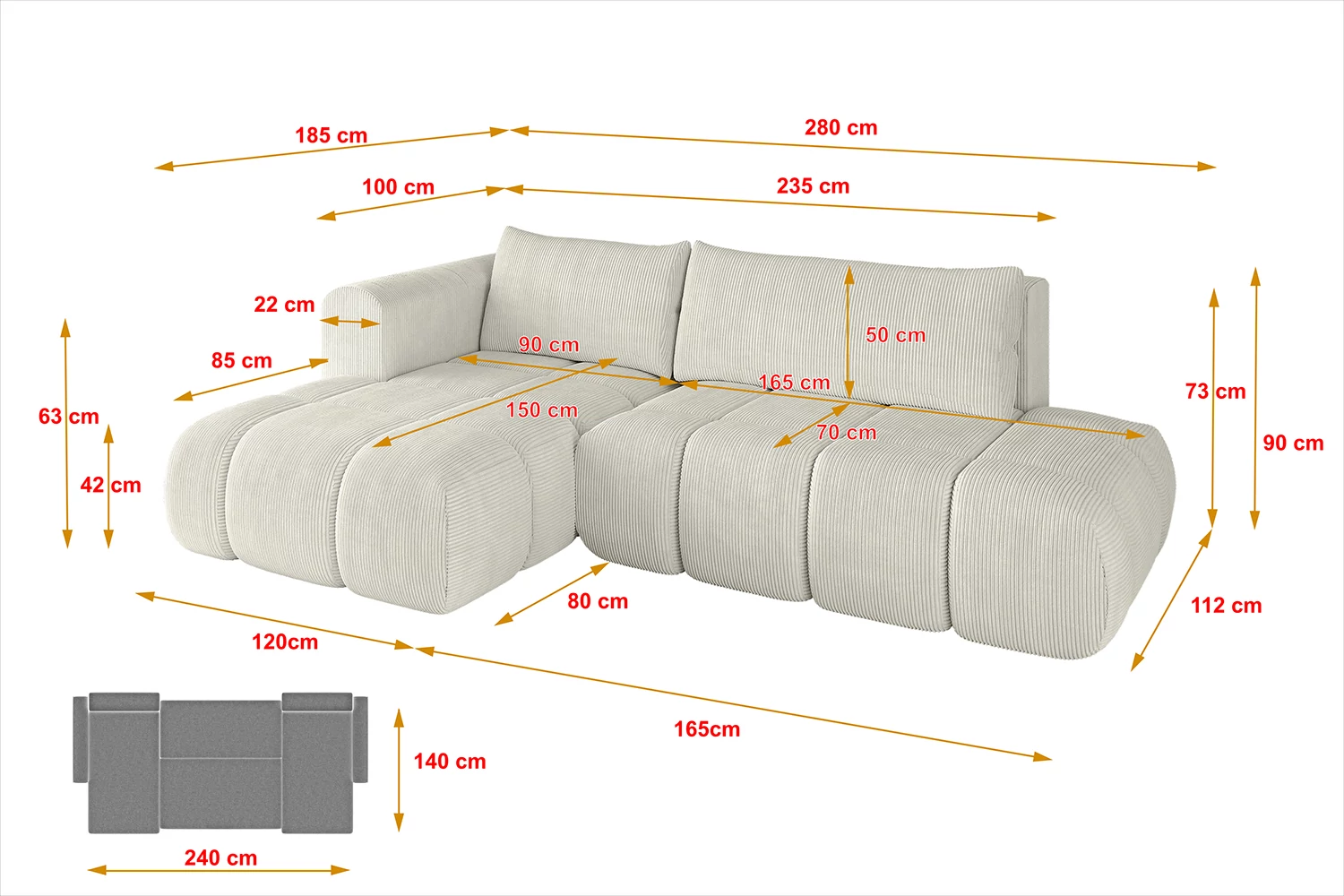 Produktdetails Ecksofa CLOUD-L Cremeweiß - Poso 100