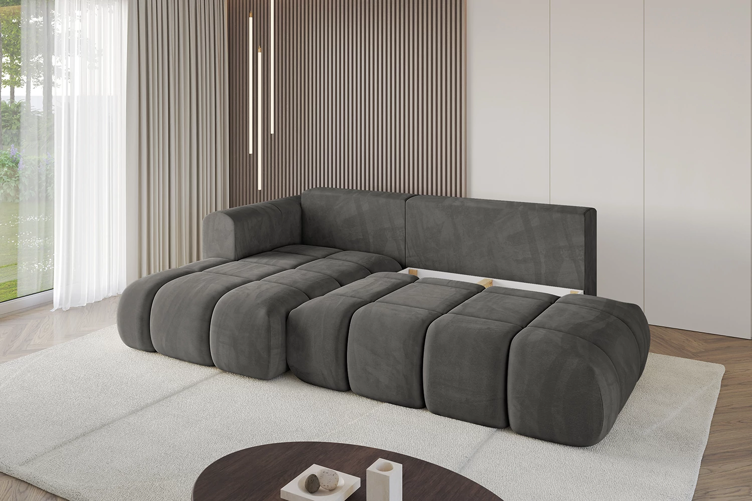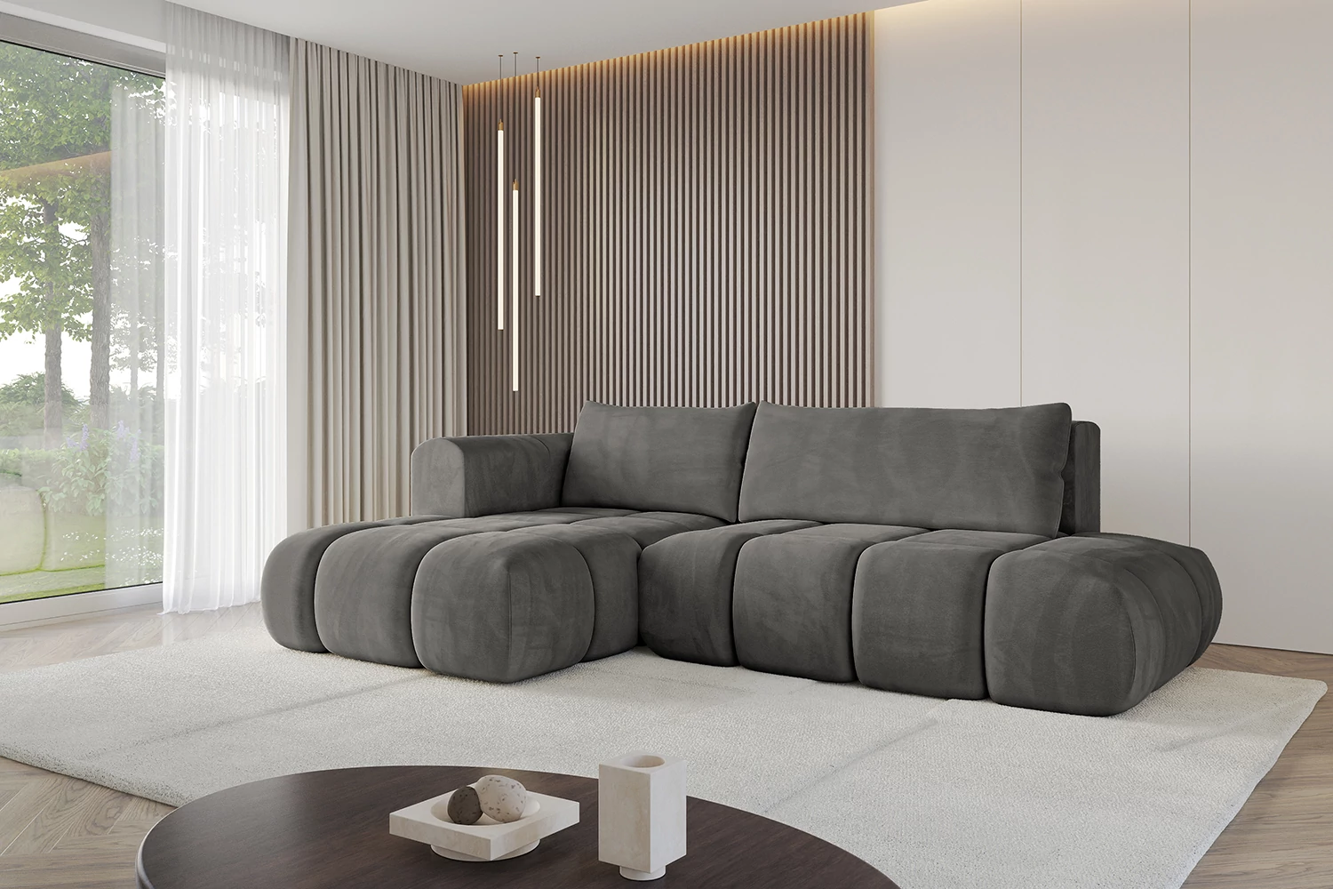 Ein modernes Polstersofa mit Schlaffunktion ist ein vielseitiges Möbelstück für jedes Zuhause. Unsere stilvolle Eckcouch in L-Form kombiniert Funktionalität mit Ästhetik und bietet höchsten Komfort beim Sitzen, Liegen und Schlafen. Die kompakte L Sofa ist ideal für moderne Wohnräume und schafft eine gemütliche Atmosphäre für jede Gelegenheit. Diese platzsparende Schlafcouch schafft nicht nur Sitzplätze für die ganze Familie, sondern verwandelt sich bei Bedarf schnell in ein komfortables Gästebett.
