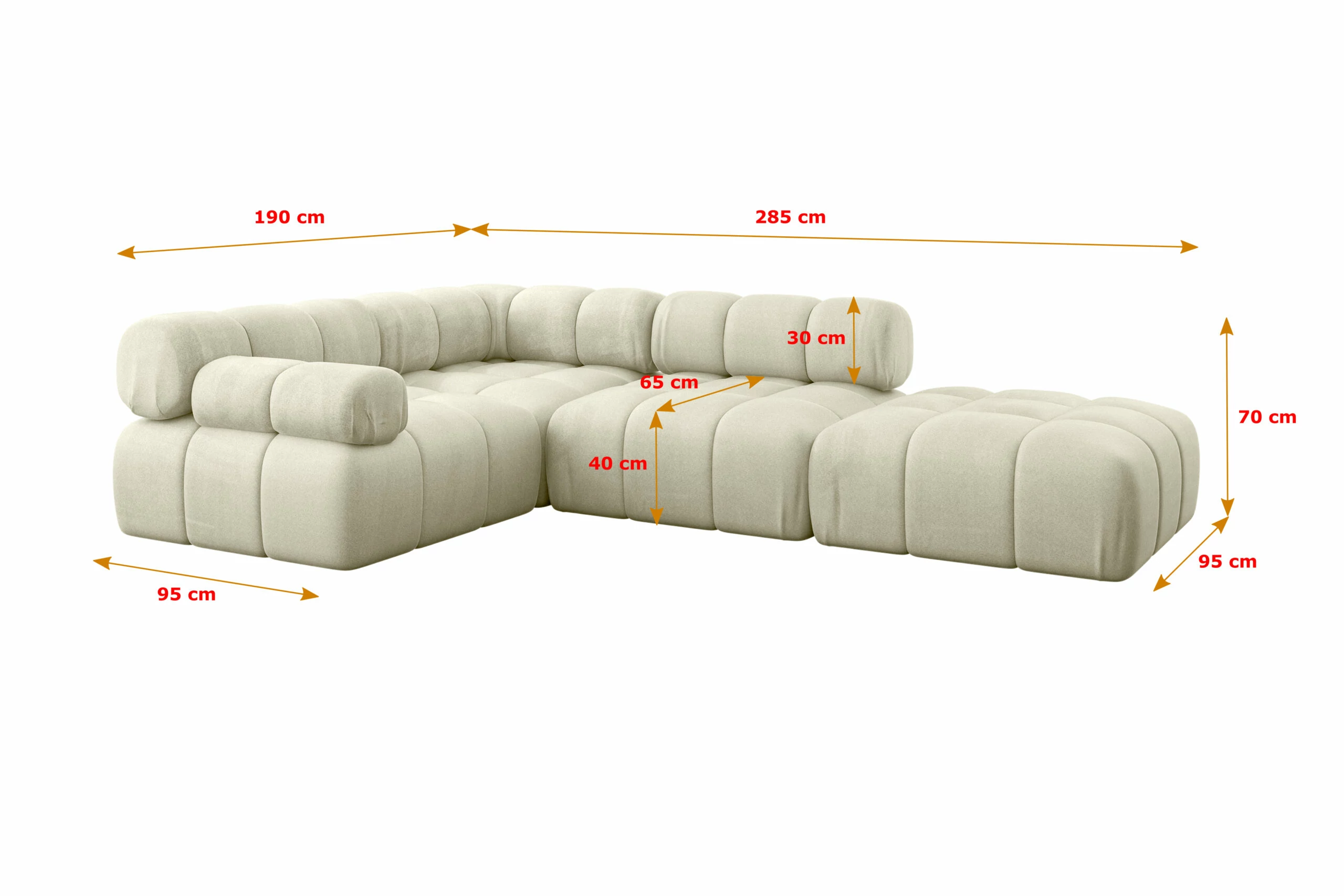 Dieses moderne, modulare Polstersofa in L‑Form vereint höchsten Sitzkomfort, stilvolle Optik und maximale Raumnutzung. Ob kompakt für kleine Wohnräume oder großzügig für geräumige Lounges – unser Ecksofa wächst mit deinen Bedürfnissen