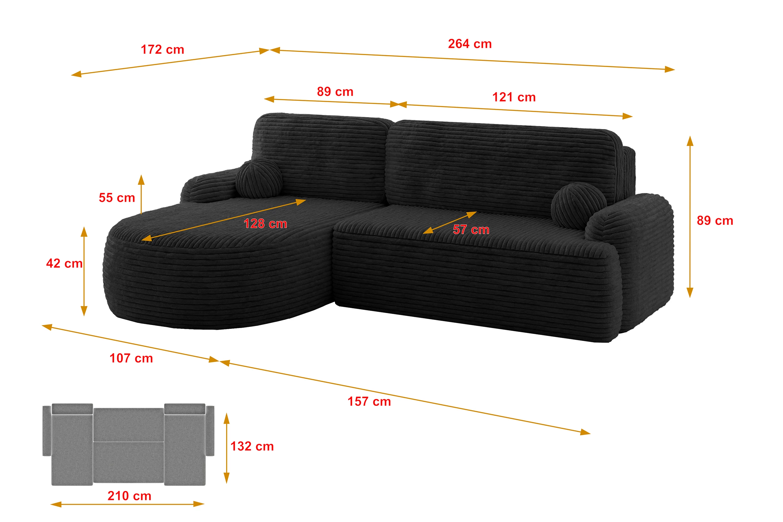 Produktdetails Ecksofa LIRA-L Schwarz - Tilia 100