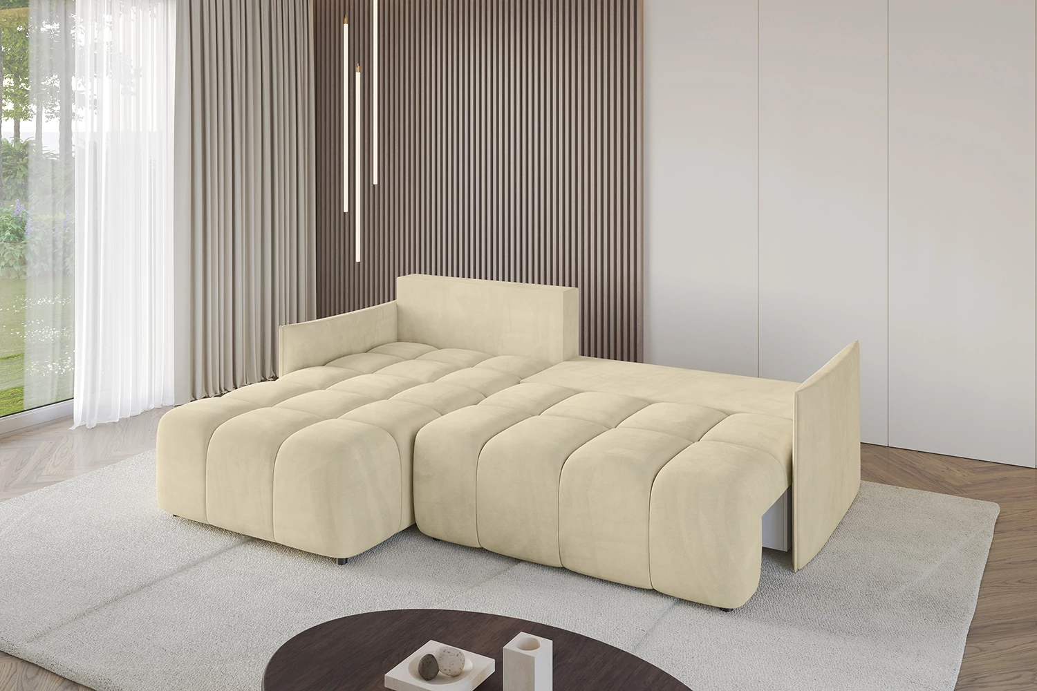 Ein modernes Polstersofa mit Schlaffunktion ist ein vielseitiges Möbelstück für jedes Zuhause. Unsere stilvolle Eckcouch in L-Form kombiniert Funktionalität mit Ästhetik und bietet höchsten Komfort beim Sitzen, Liegen und Schlafen. Die kompakte L Sofa ist ideal für moderne Wohnräume und schafft eine gemütliche Atmosphäre für jede Gelegenheit. Diese platzsparende Schlafcouch schafft nicht nur Sitzplätze für die ganze Familie, sondern verwandelt sich bei Bedarf schnell in ein komfortables Gästebett.