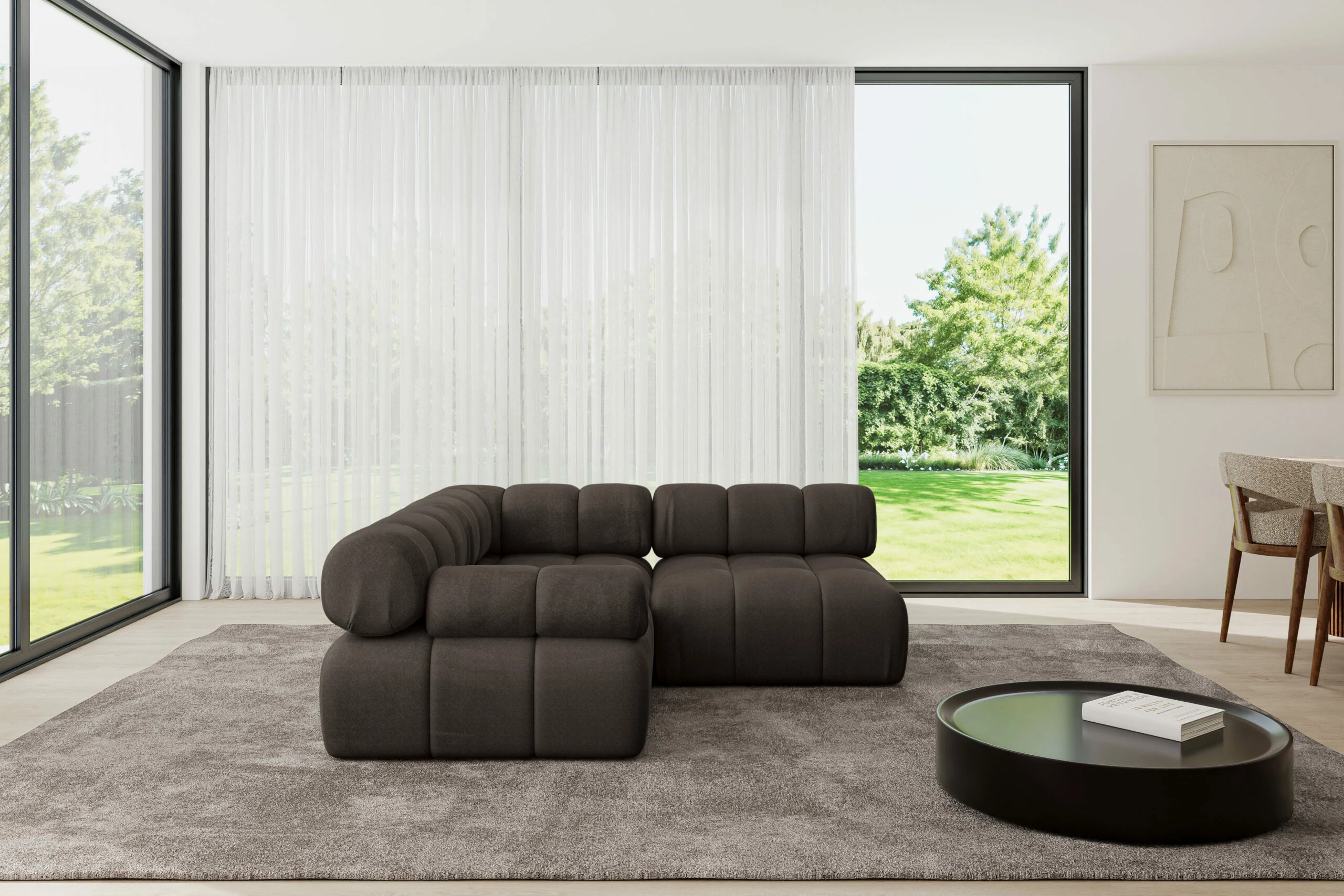 Dieses moderne, modulare Polstersofa in L‑Form vereint höchsten Sitzkomfort, stilvolle Optik und maximale Raumnutzung. Ob kompakt für kleine Wohnräume oder großzügig für geräumige Lounges – unser Ecksofa wächst mit deinen Bedürfnissen