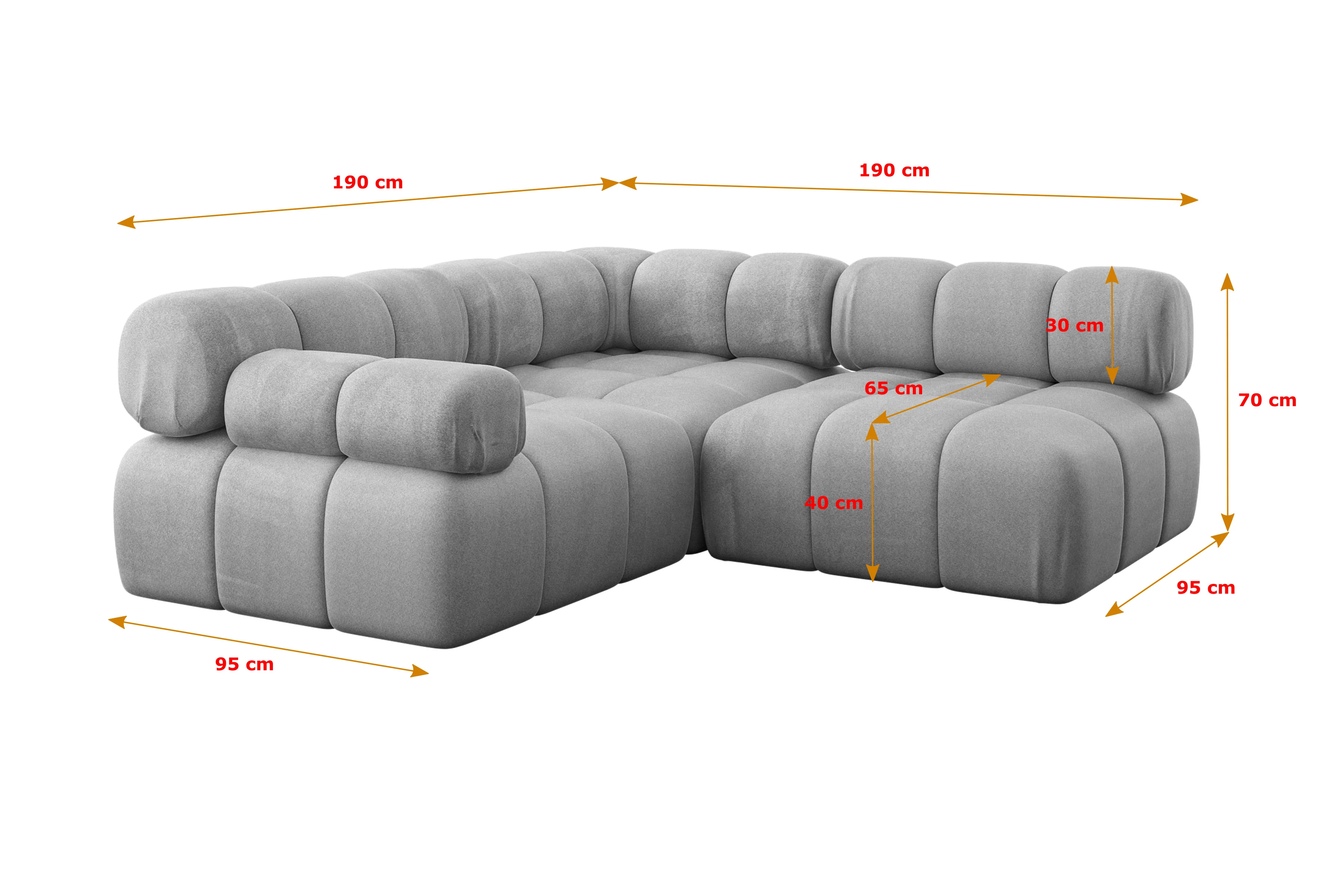 Dieses moderne, modulare Polstersofa in L‑Form vereint höchsten Sitzkomfort, stilvolle Optik und maximale Raumnutzung. Ob kompakt für kleine Wohnräume oder großzügig für geräumige Lounges – unser Ecksofa wächst mit deinen Bedürfnissen