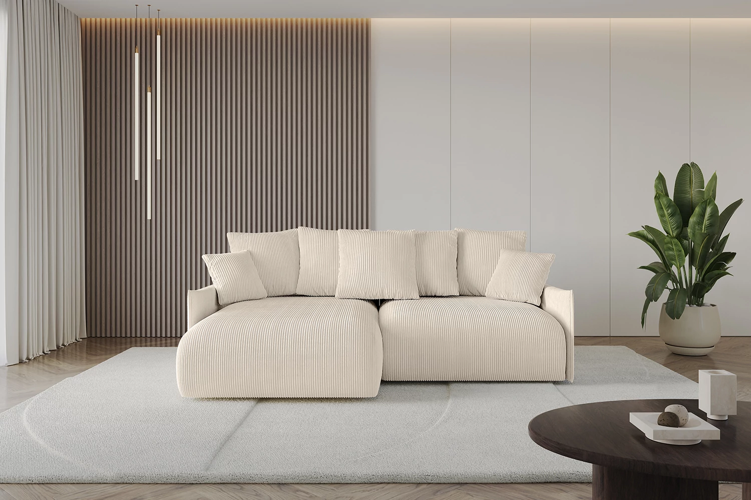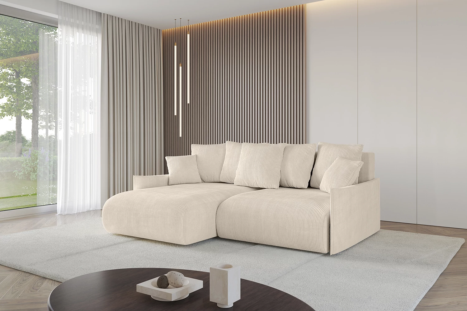 Ein modernes Polstersofa mit Schlaffunktion ist ein vielseitiges Möbelstück für jedes Zuhause. Unsere stilvolle Eckcouch in L-Form kombiniert Funktionalität mit Ästhetik und bietet höchsten Komfort beim Sitzen, Liegen und Schlafen. Die kompakte L Sofa ist ideal für moderne Wohnräume und schafft eine gemütliche Atmosphäre für jede Gelegenheit. Diese platzsparende Schlafcouch schafft nicht nur Sitzplätze für die ganze Familie, sondern verwandelt sich bei Bedarf schnell in ein komfortables Gästebett.