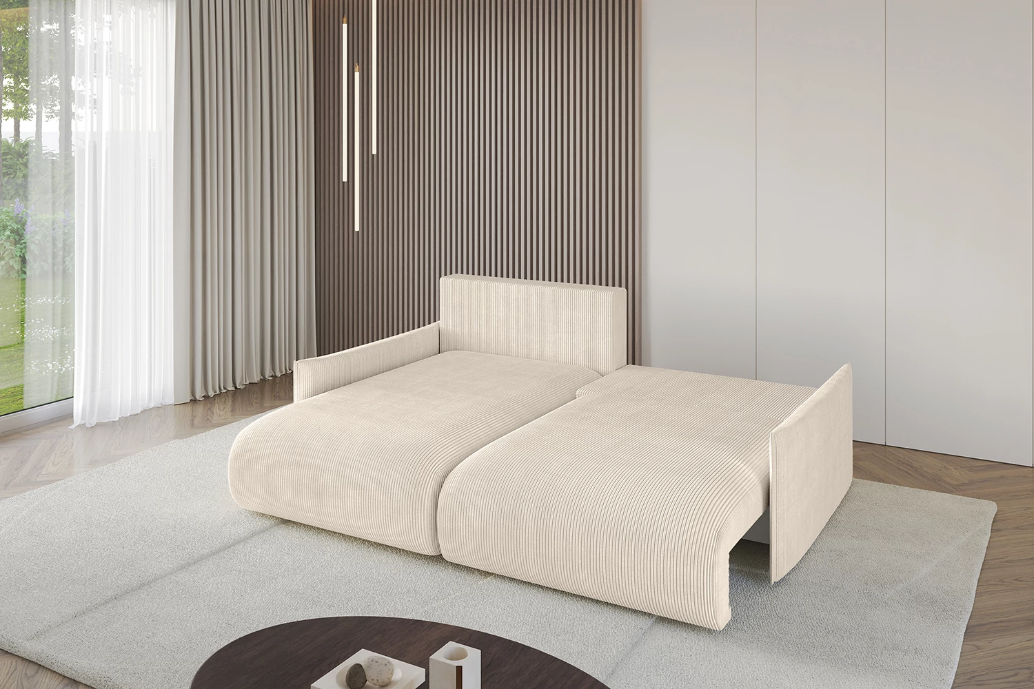 Dieses ausziehbares Eckschlafsofa für Ihr Zuhause überzeugt durch hochwertige Verarbeitung und durchdachte Technik. Der solide Auszugsmechanismus verwandelt das Sofa im Handumdrehen in ein komfortables Polstersofa-Gästebett. Perfekt für spontanen Besuch, gemütliche Filmabende oder den täglichen Einsatz als Schlafcouch.