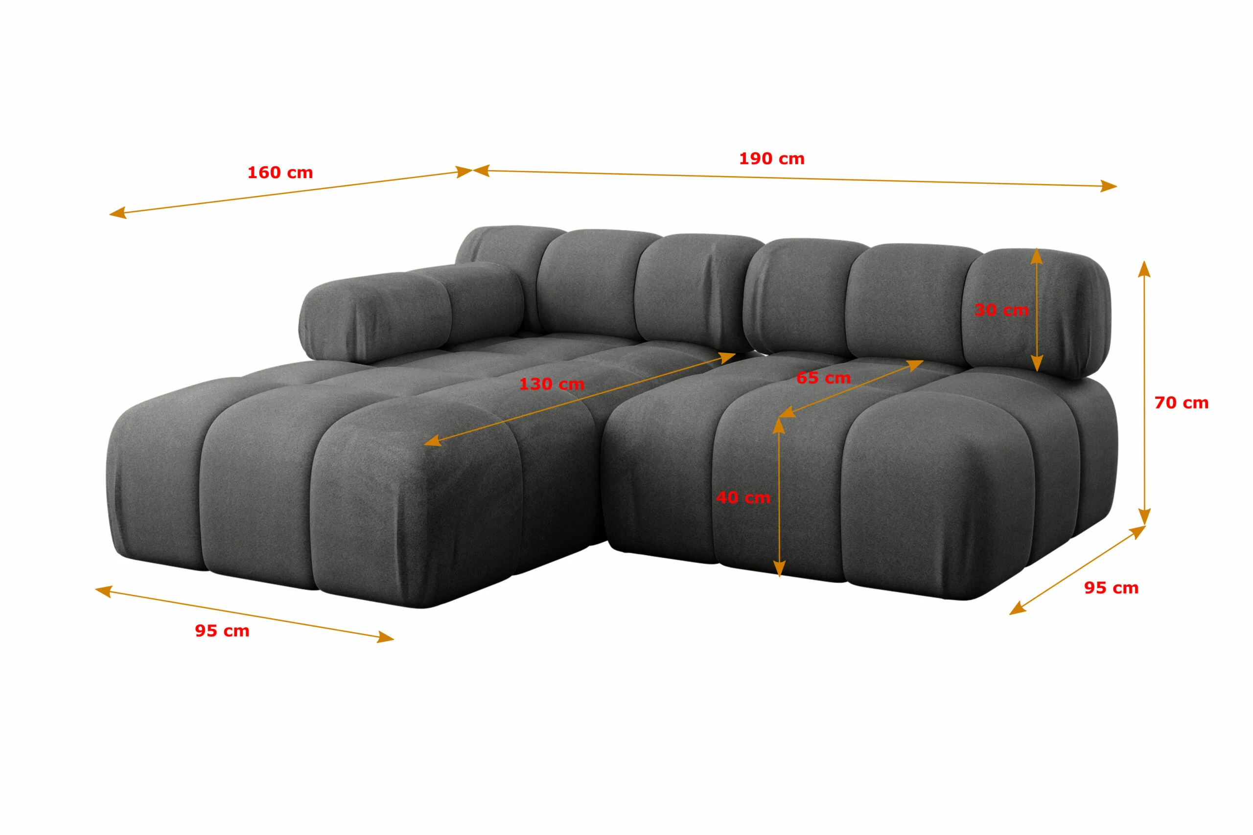 Dieses moderne, modulare Polstersofa in L‑Form vereint höchsten Sitzkomfort, stilvolle Optik und maximale Raumnutzung. Ob kompakt für kleine Wohnräume oder großzügig für geräumige Lounges – unser Ecksofa wächst mit deinen Bedürfnissen