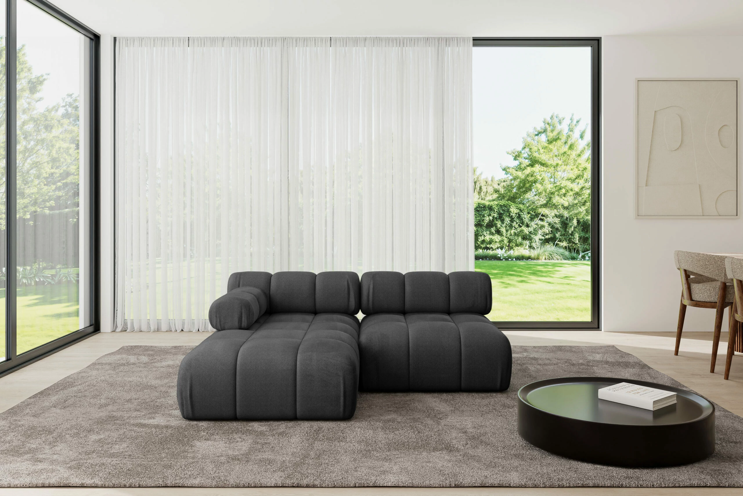 Dieses moderne, modulare Polstersofa in L‑Form vereint höchsten Sitzkomfort, stilvolle Optik und maximale Raumnutzung. Ob kompakt für kleine Wohnräume oder großzügig für geräumige Lounges – unser Ecksofa wächst mit deinen Bedürfnissen