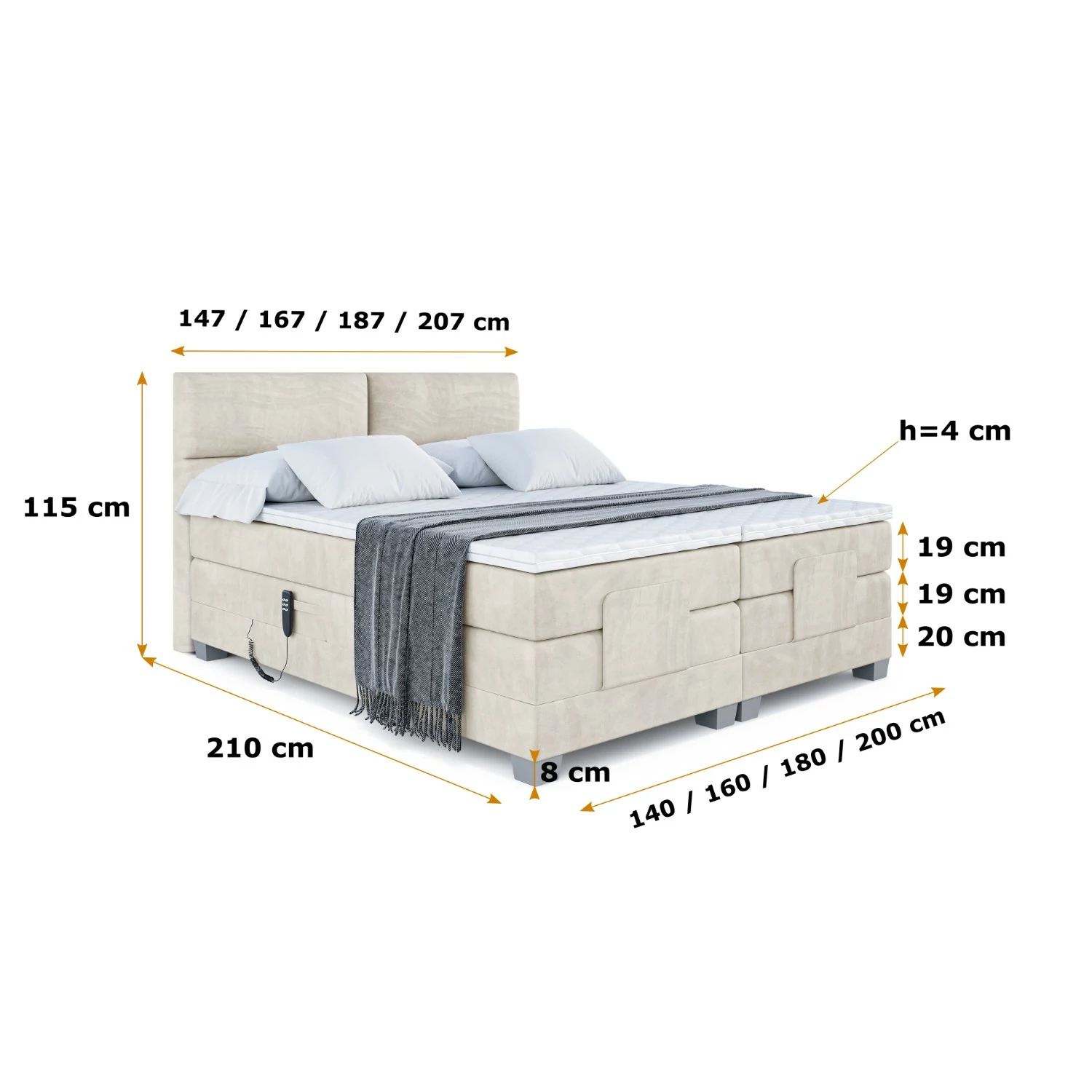 Produktdetails Elektrisches Boxspringbett MAYA EL Beige - Casablanca 2301 140x200 cm