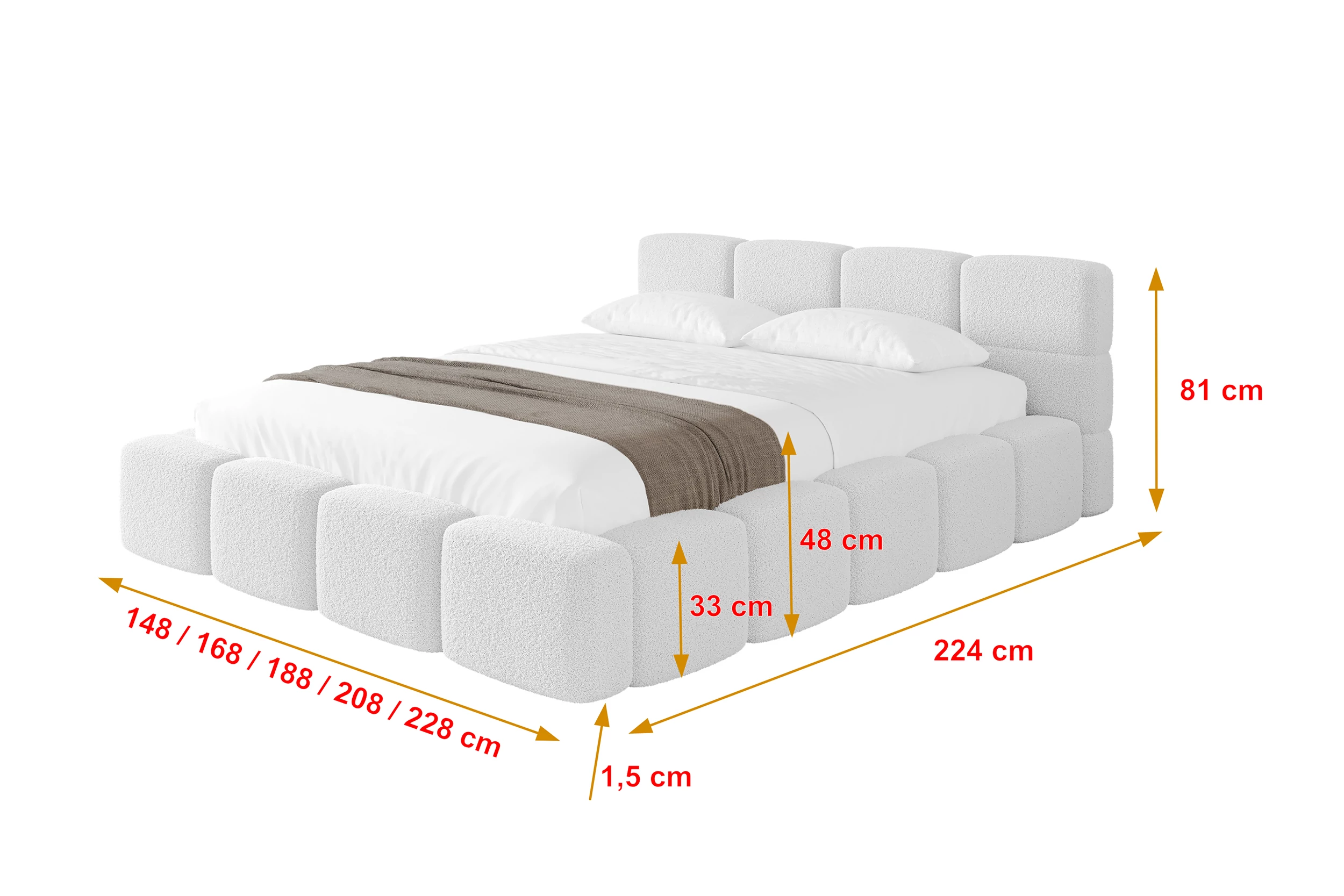 Polsterbett NATA-v1 Weiß - Quelle 01 140x200 cm