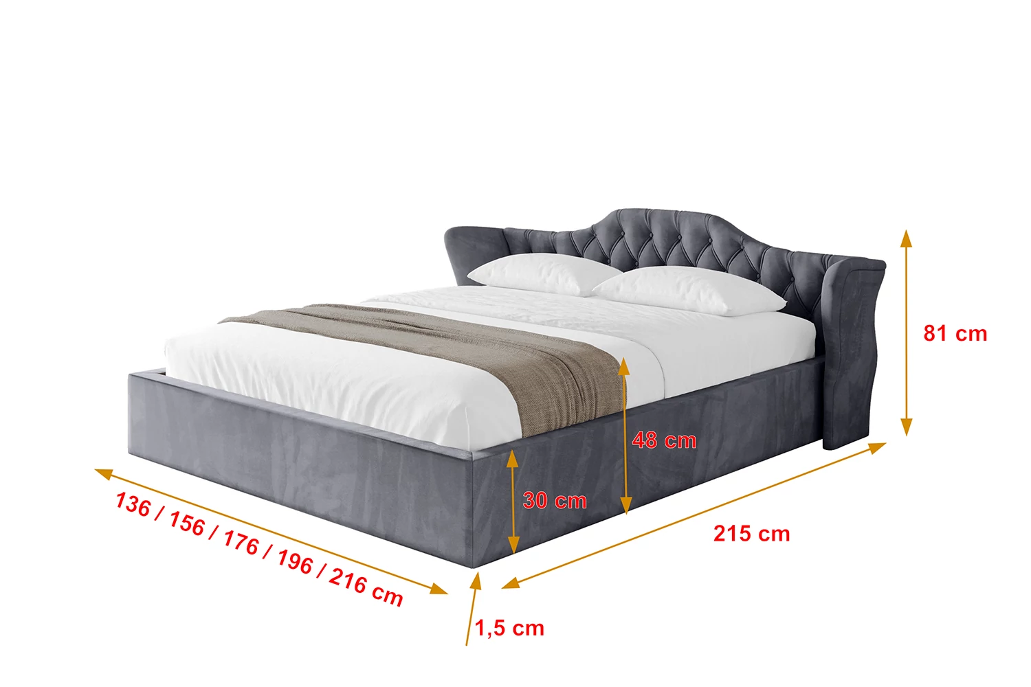 Polsterbett ZORAN-v1 Dunkelgrau - Casablanca 2315 160x200 cm