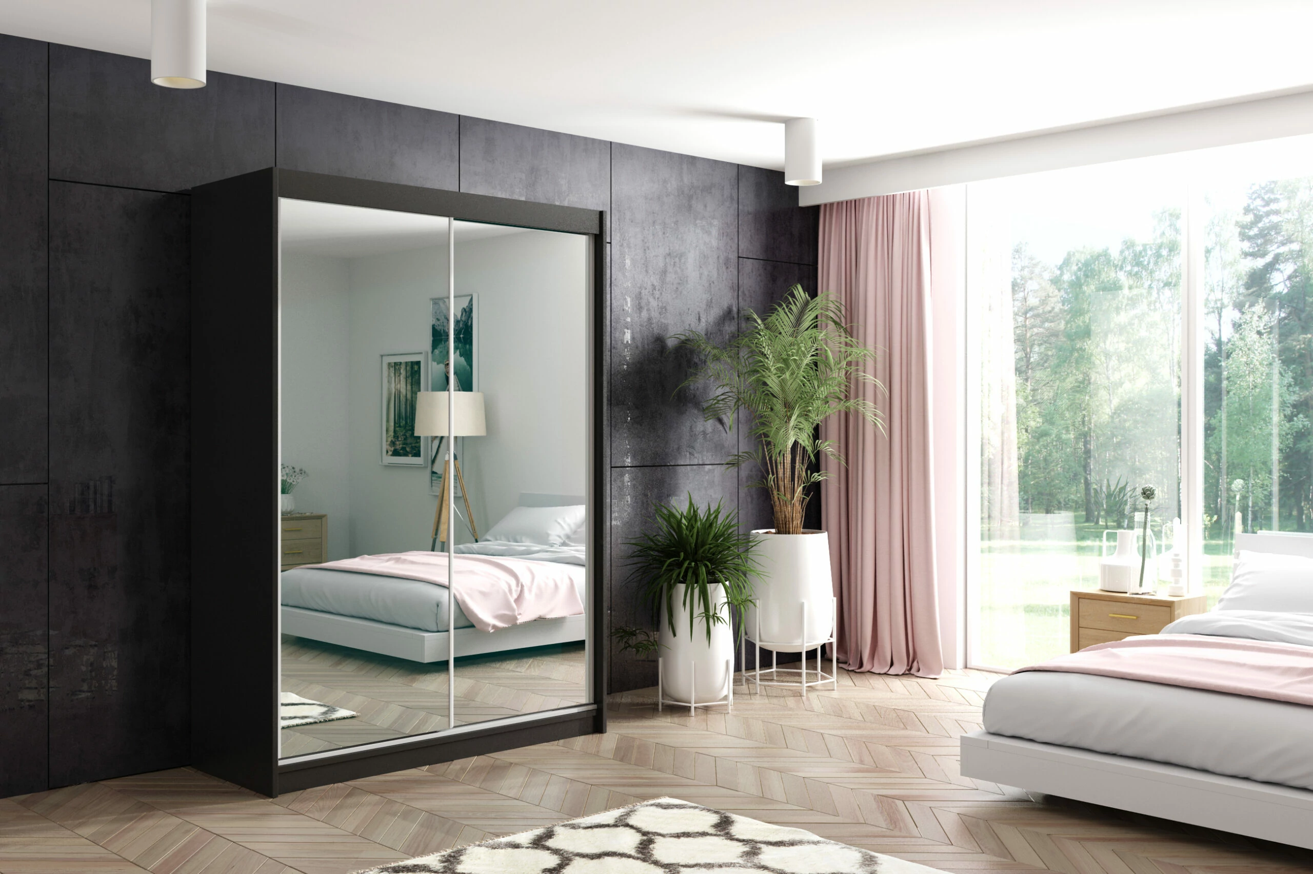 Schiebetürenschränke DEBI Schwarz 120 cm x 61 cm x 216 cm