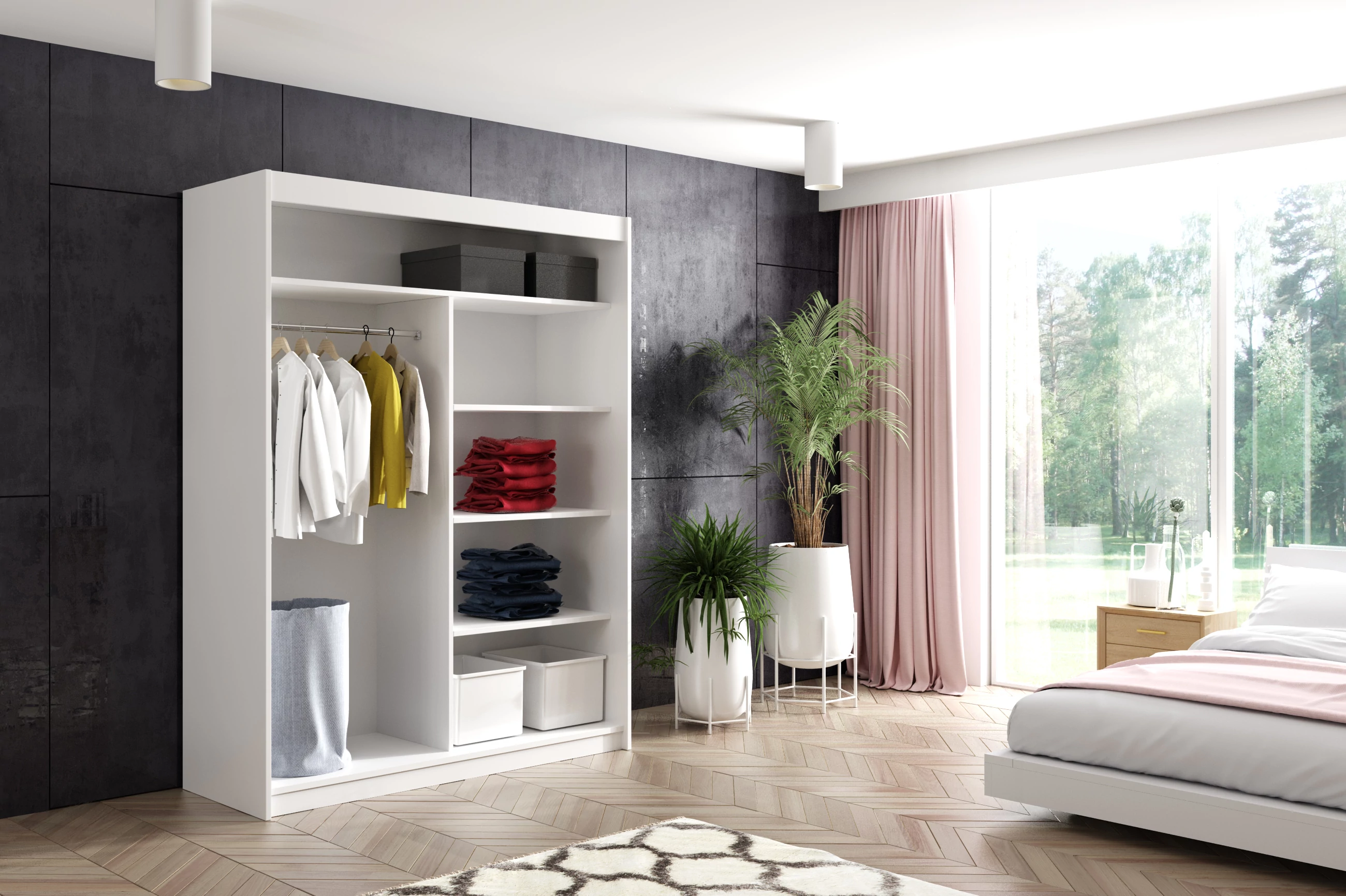 Schiebetürenschränke DEBI Weiß 160 cm x 61 cm x 216 cm