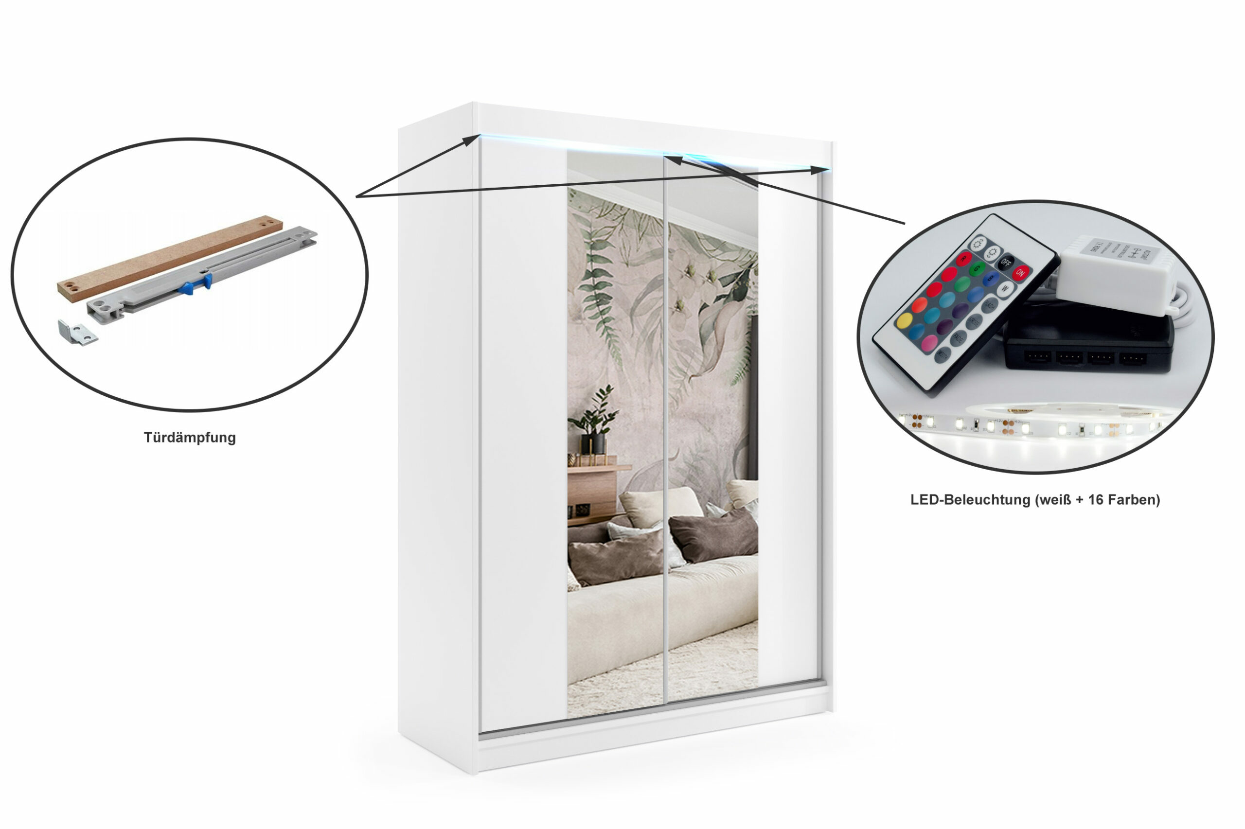 Schiebetürenschränke LUZO Weiß 120 cm x 61 cm x 216 cm
