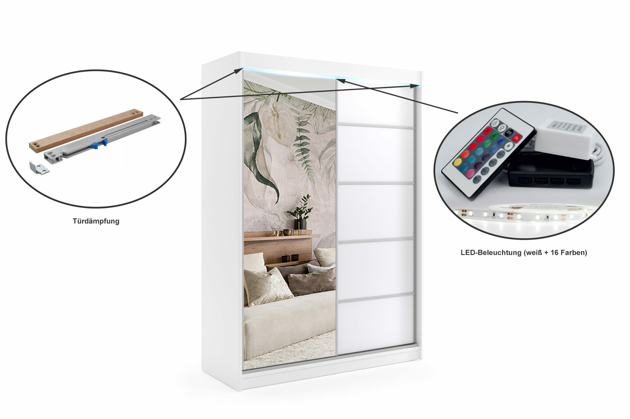 Schiebetürenschränke MAKI Weiß 120 cm x 61 cm x 216 cm