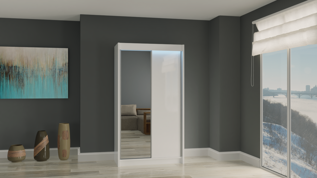 Schiebetürenschränke PARTI Weiß 120 cm x 61 cm x 216 cm