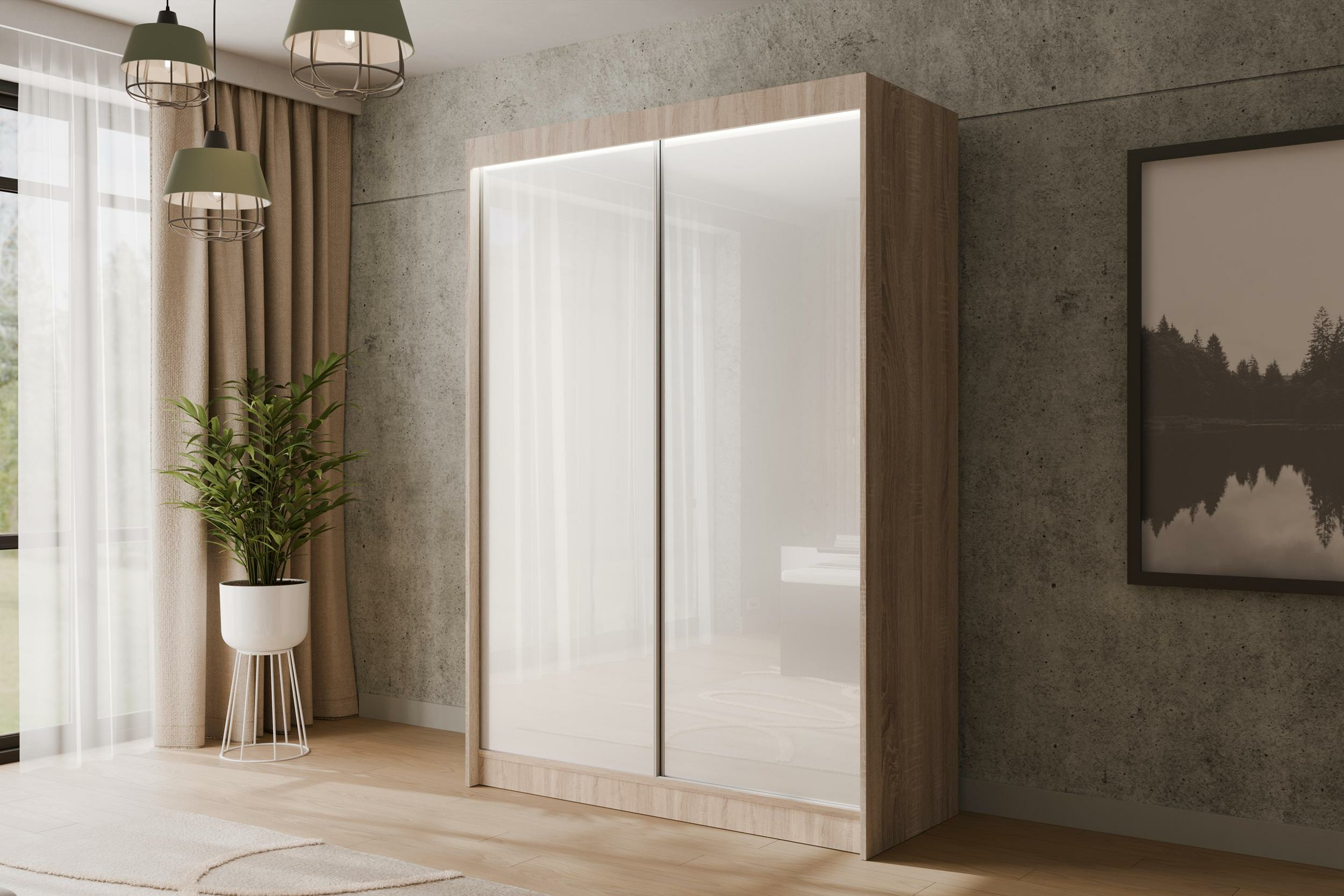 Eiche Sonoma + Lacobel Weiß 120 cm x 61 cm x 215 cm