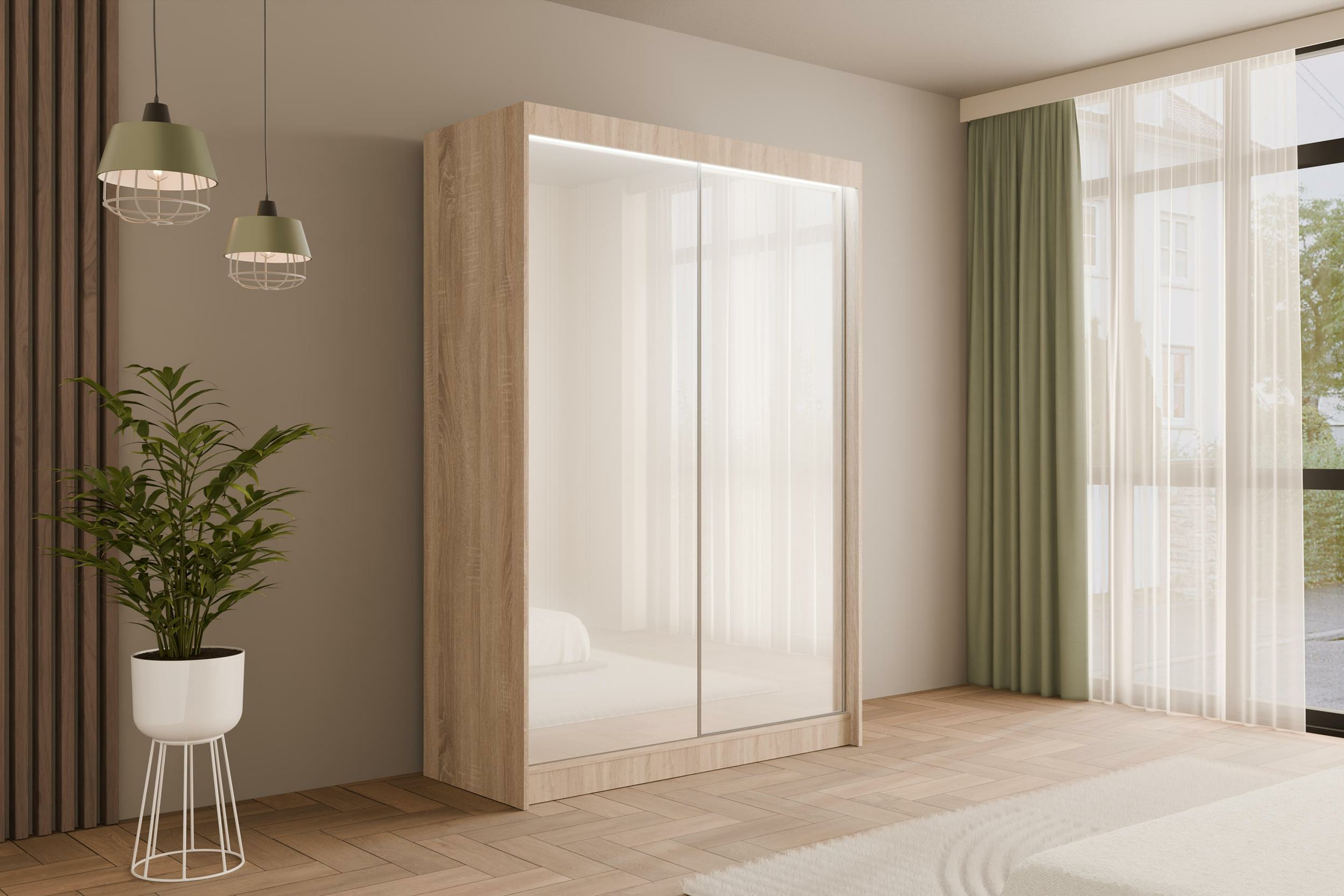 Schiebetürenschränke PEKA Eiche Sonoma + Lacobel Weiß 120 cm x 61 cm x 215 cm