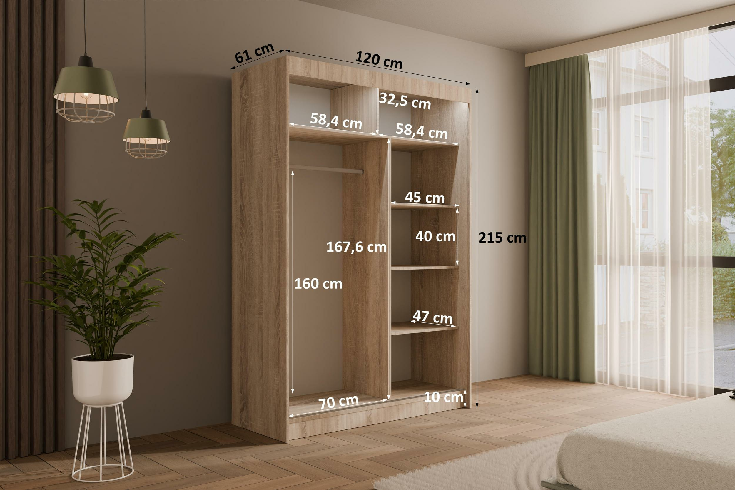 120 cm x 61 cm x 215 cm
