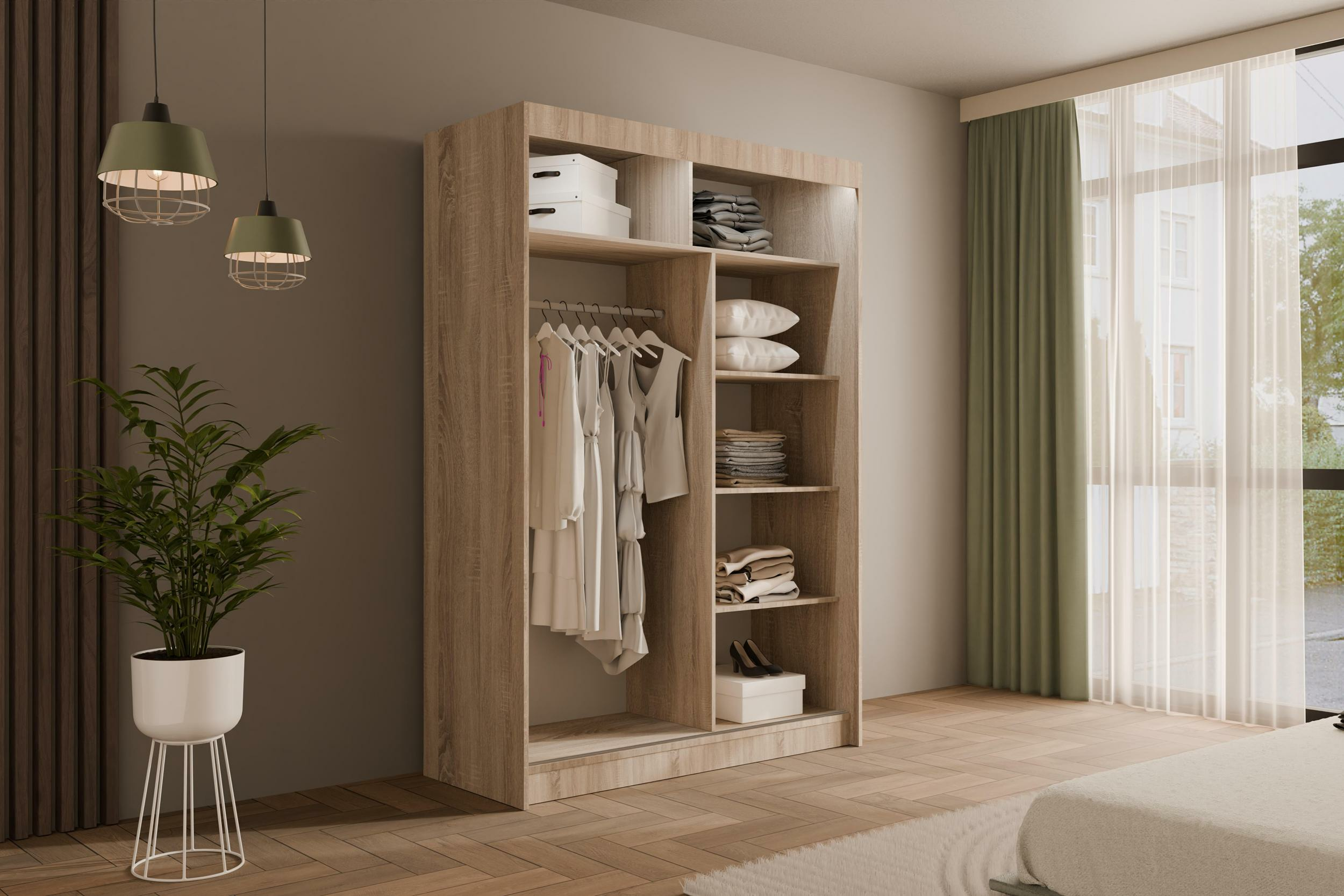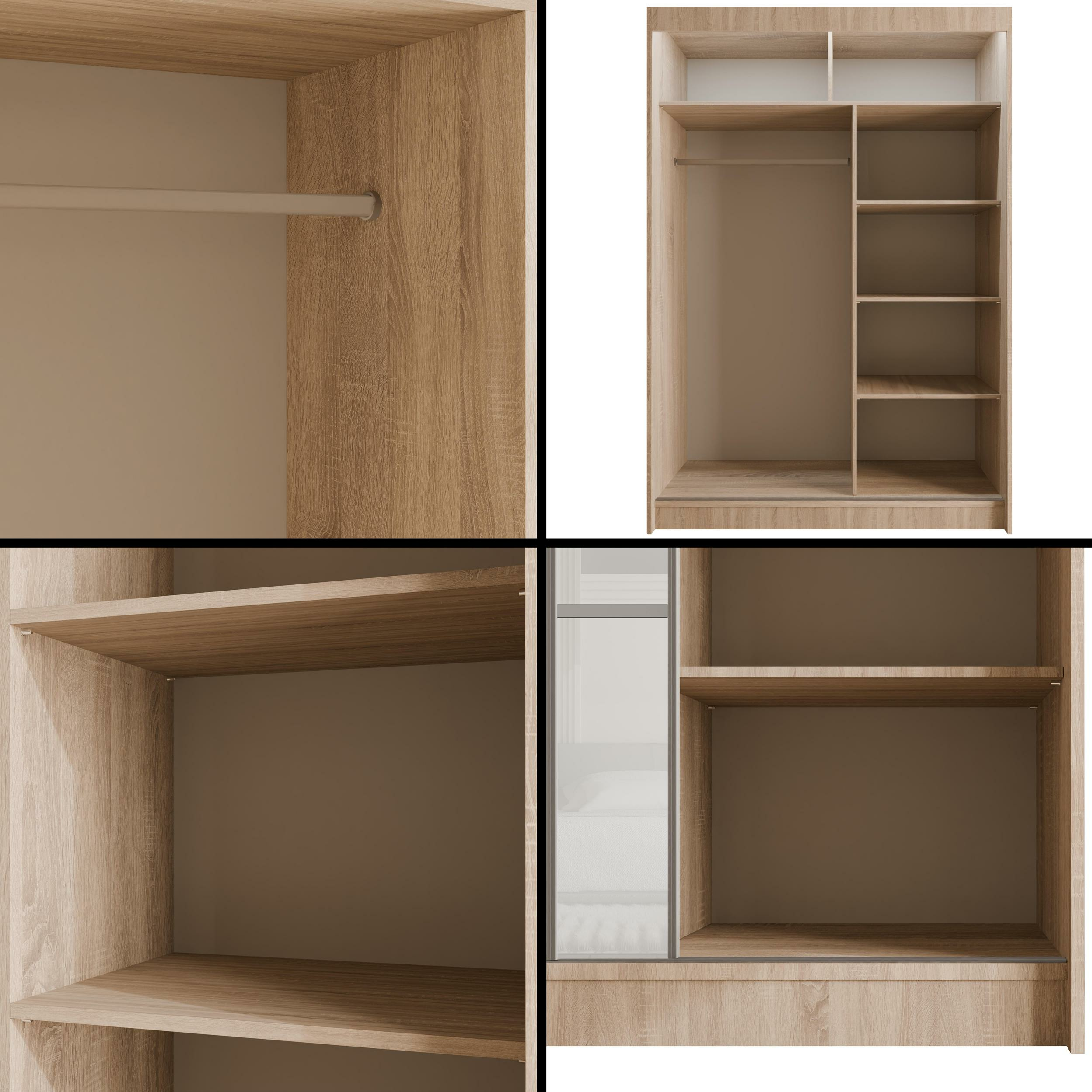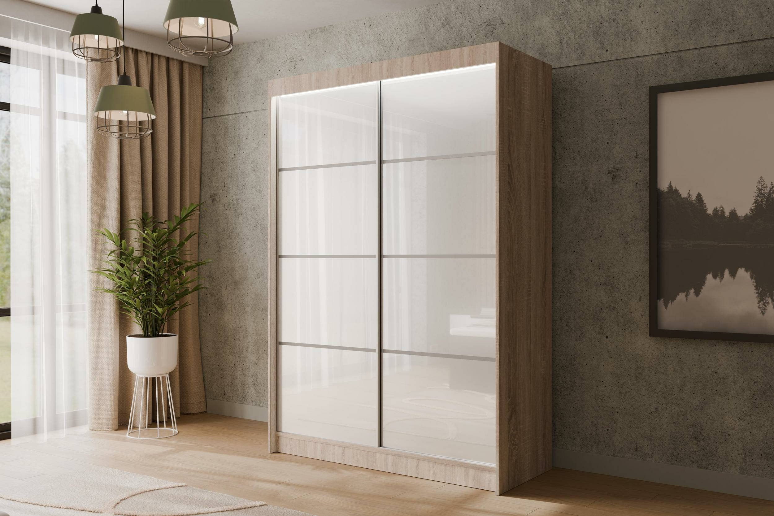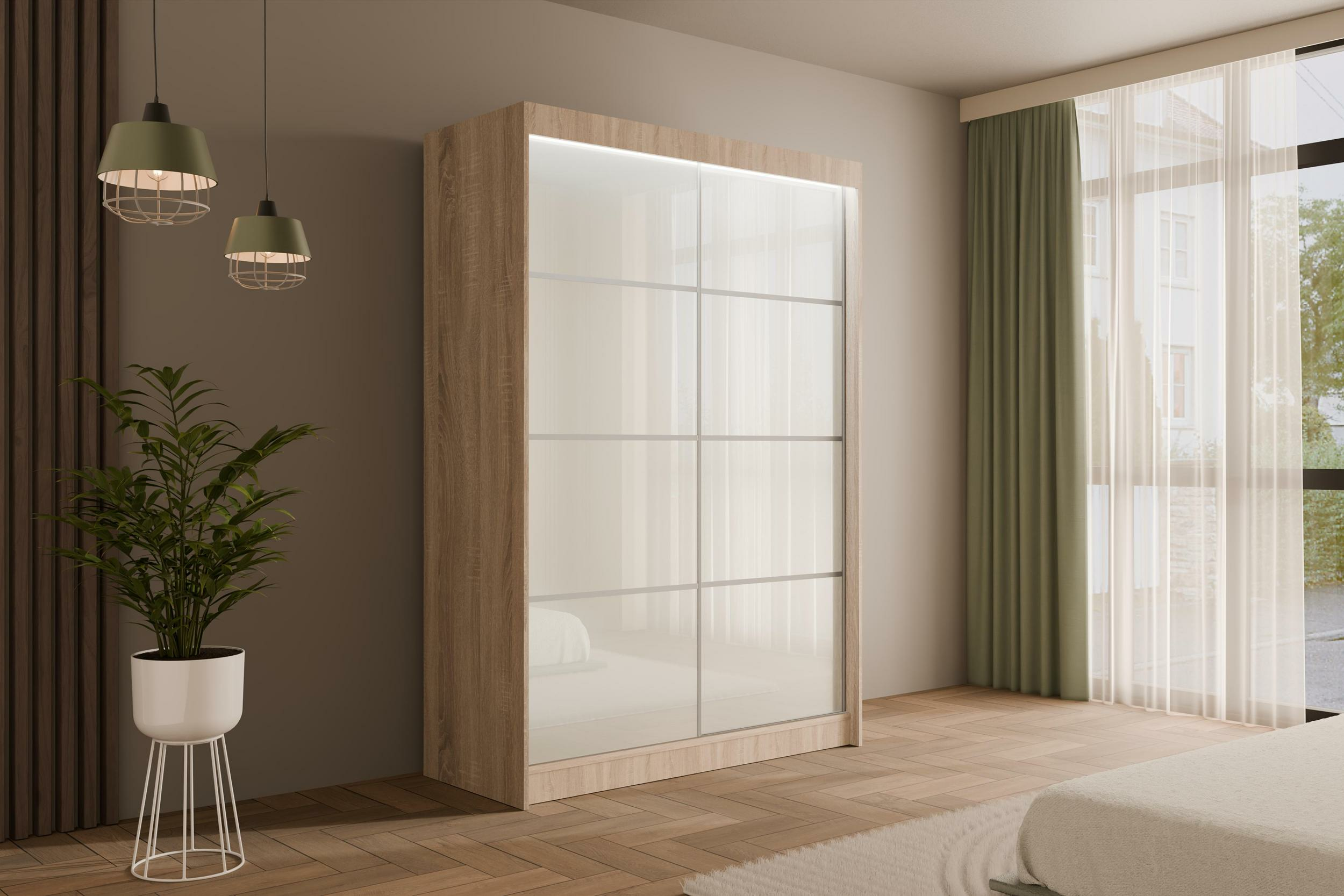 Schiebetürenschränke PEKA3 Eiche Sonoma + Lacobel Weiß 120 cm x 61 cm x 215 cm