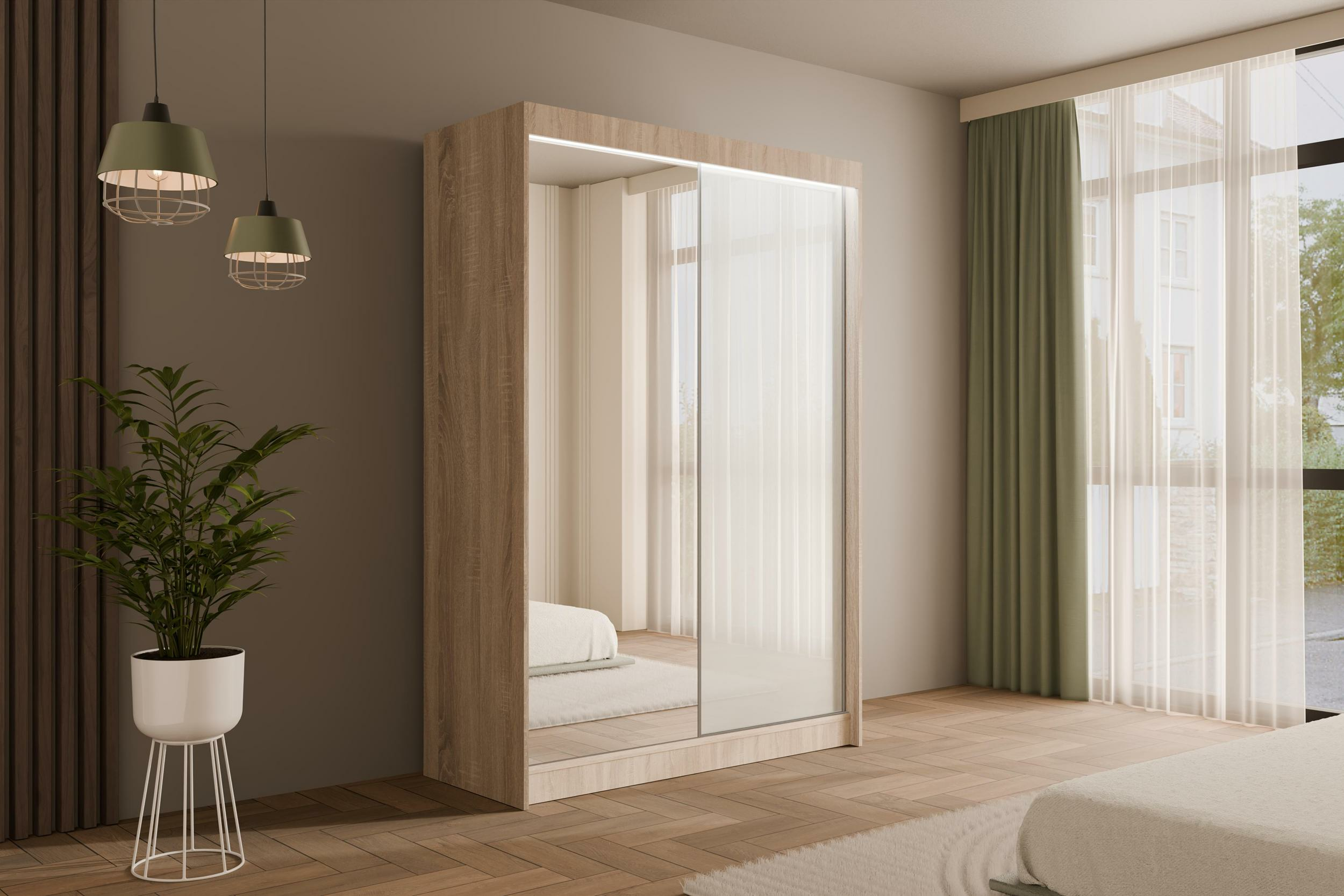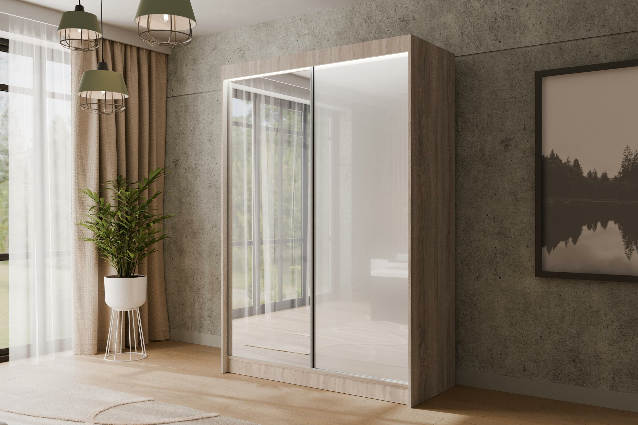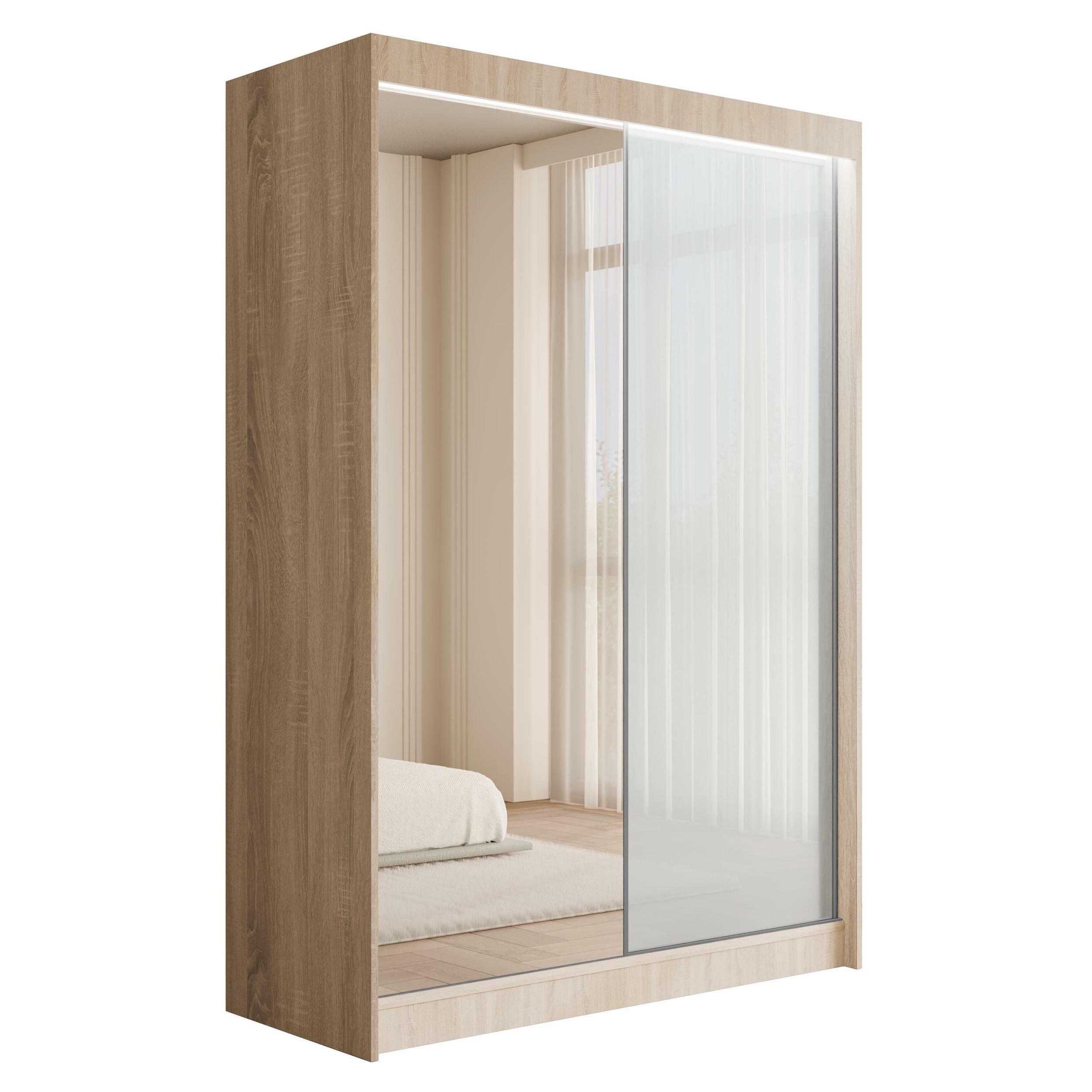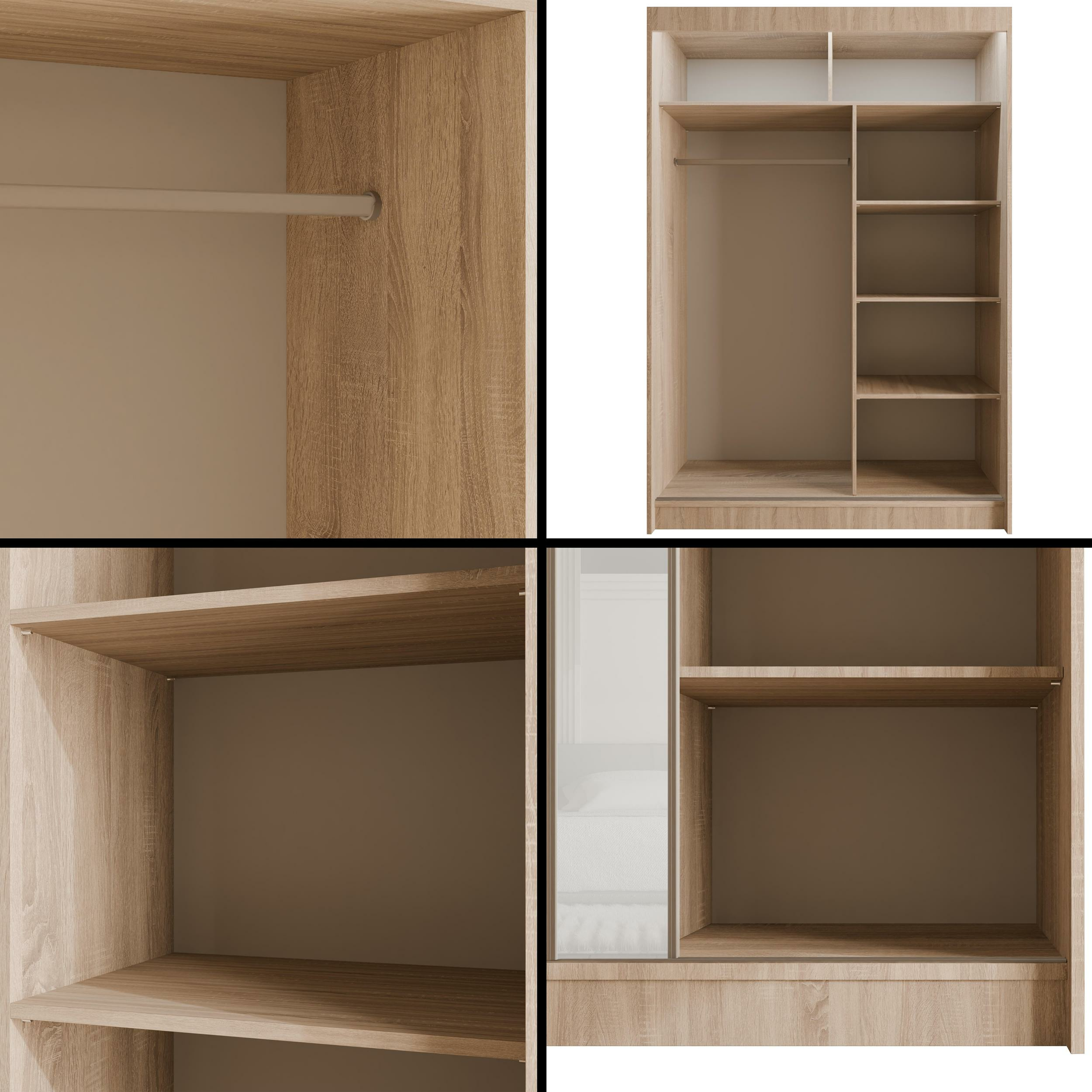 Schiebetürenschränke VESLI Eiche Sonoma + Lacobel Weiß 120 cm x 61 cm x 215 cm