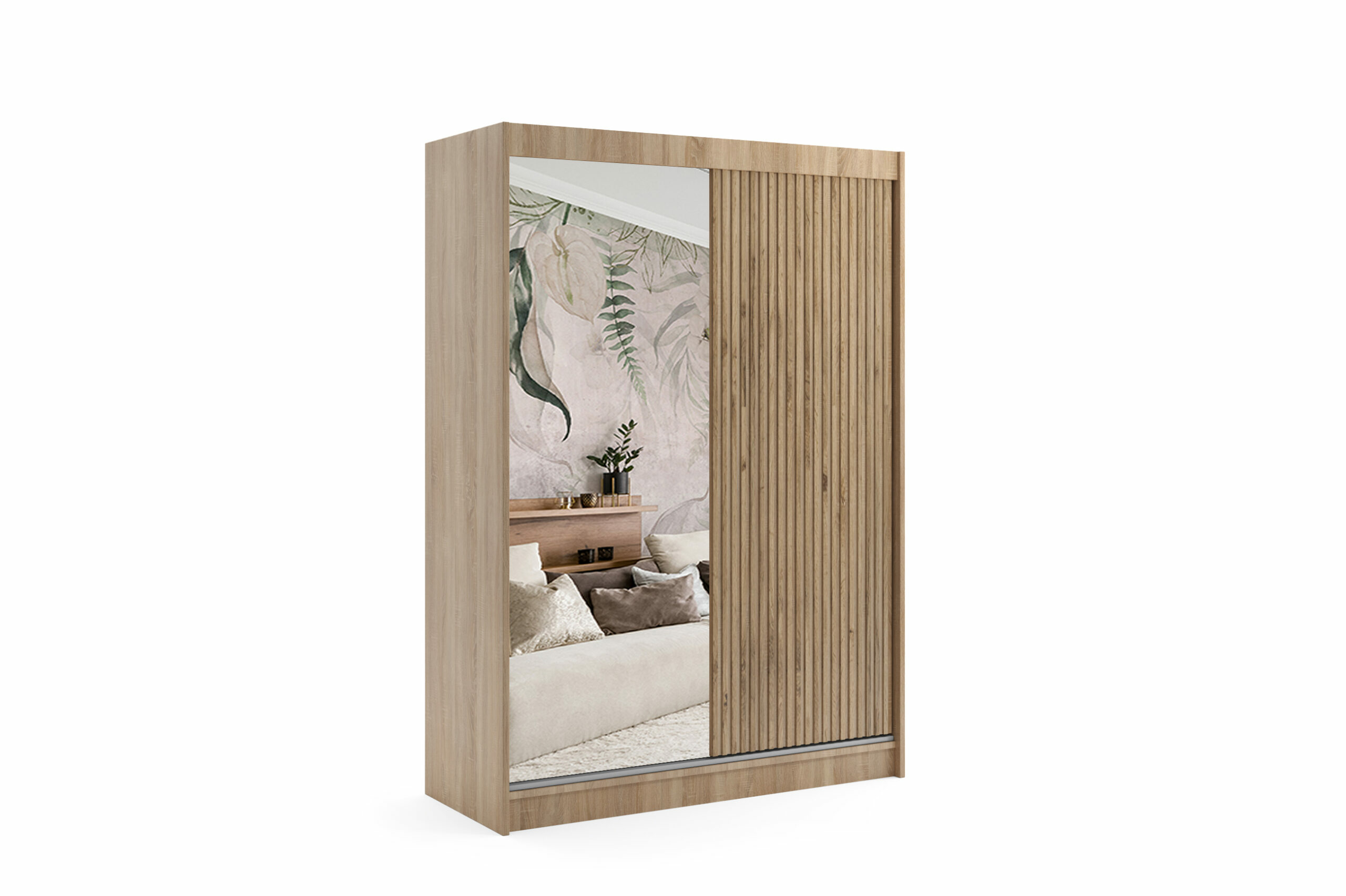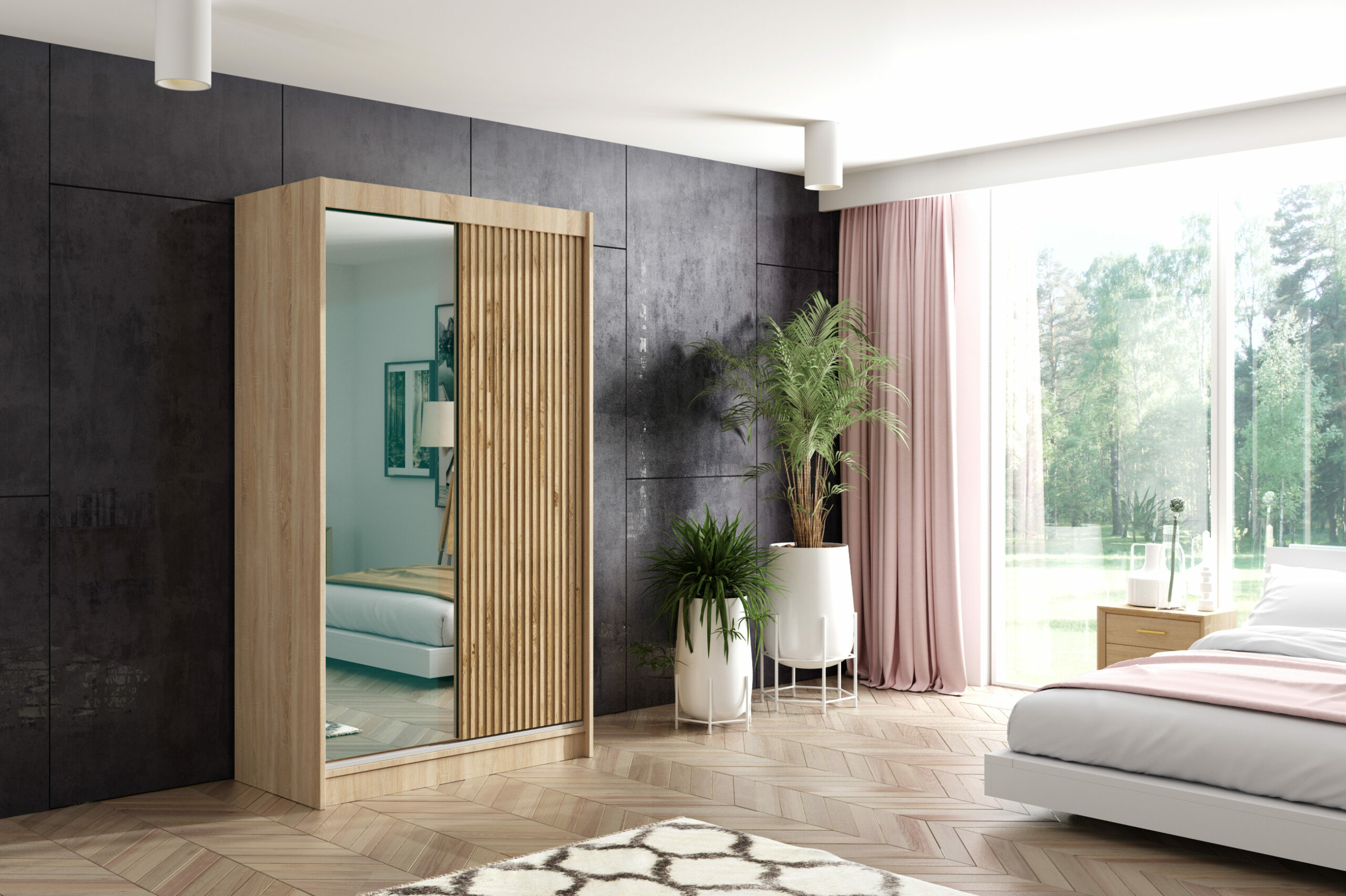Schiebetürenschränke VILAN Eiche Sonoma + Eiche Sonoma + Lamelle Eiche Wotan 120 cm x 61 cm x 215 cm