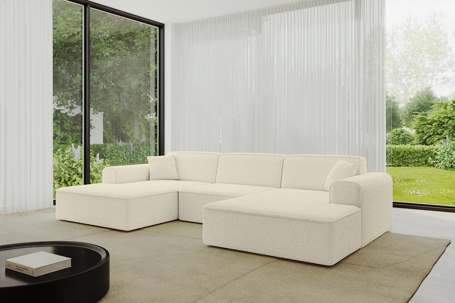 Dank der rundum bezogenen Rückenfläche können Sie dieses Sofa nicht nur klassisch an der Wand platzieren, sondern auch frei im Raum aufstellen. Ob als stilvolles Zentrum Ihres Wohnzimmers oder als Raumteiler in einem offenen Grundriss – dieses Ecksofa macht aus jeder Perspektive eine gute Figur.