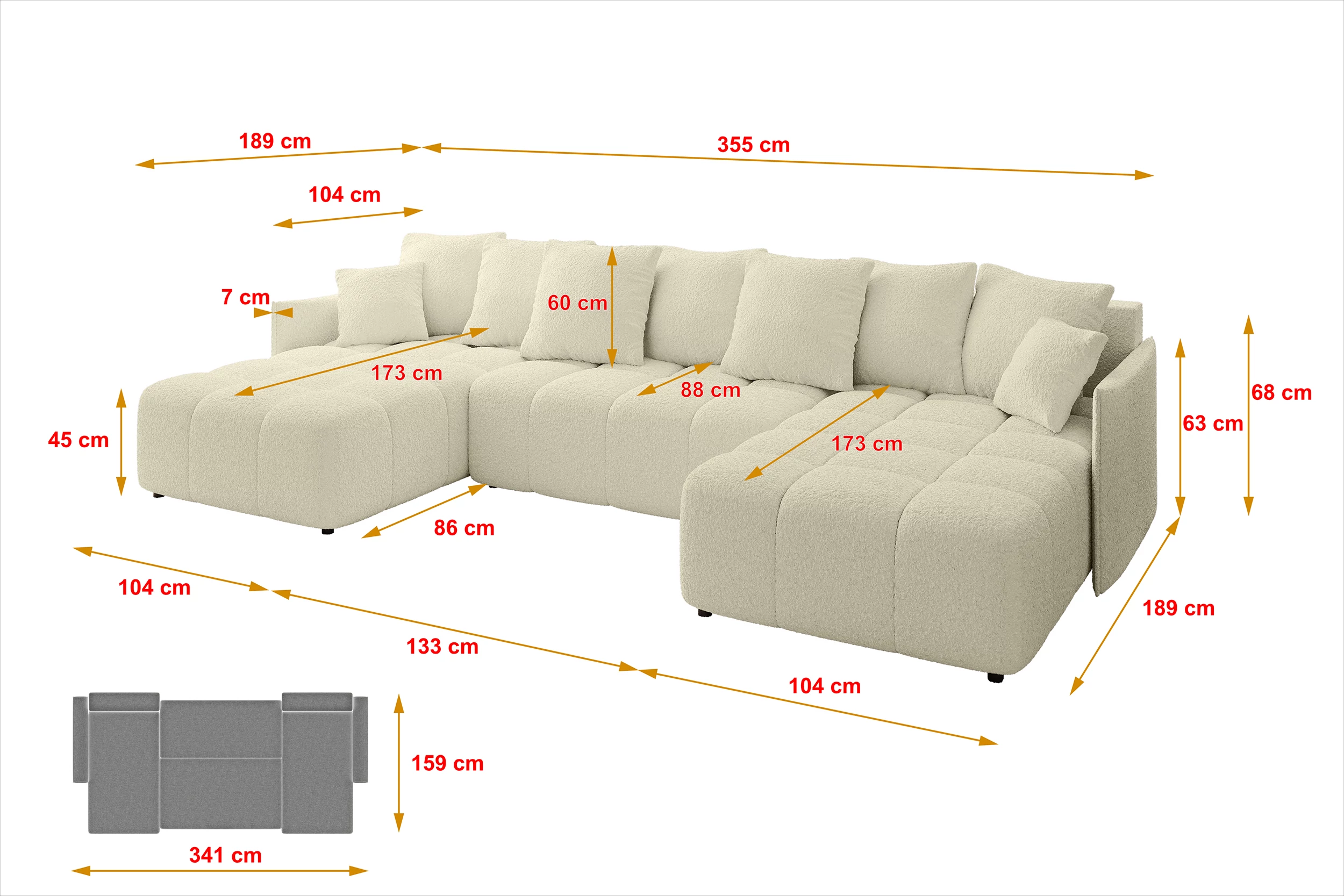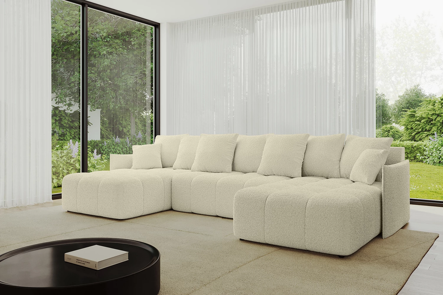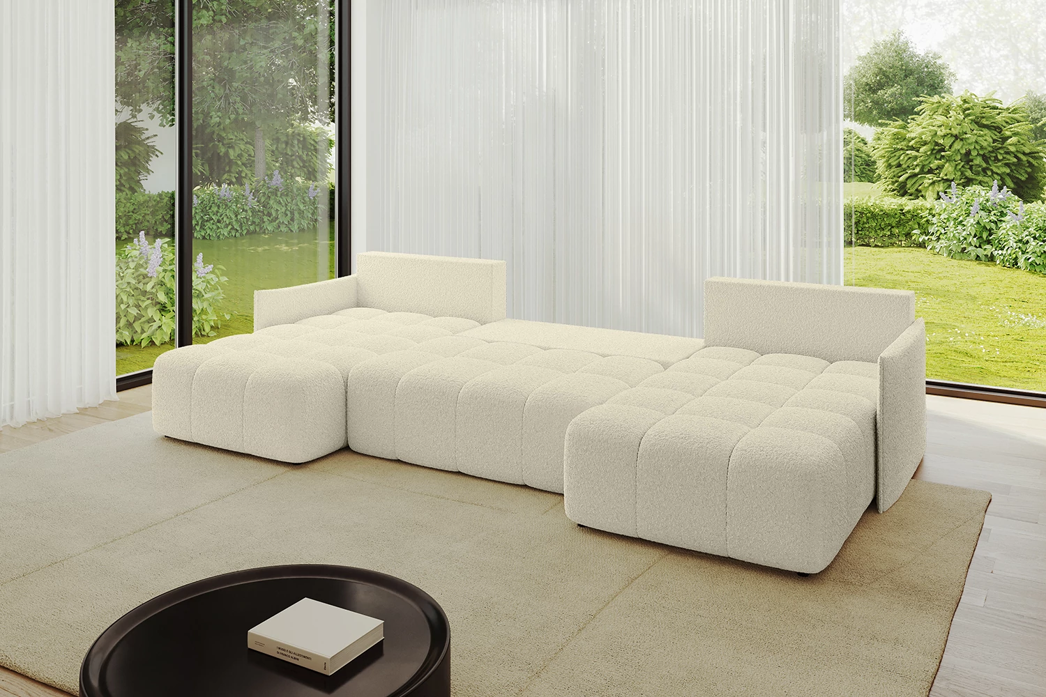 Eine moderne Wohnlandschaft mit Schlaffunktion ist ein vielseitiges Möbelstück für jedes Zuhause. Unsere stilvolle Wohnlandschaft kombiniert Funktionalität mit Ästhetik und bietet höchsten Komfort beim Sitzen, Liegen und Schlafen. Die großzügige U-Form ist ideal für weitläufige Wohnbereiche und schafft eine luxuriöse Atmosphäre für jede Gelegenheit. Diese Schlafcouch bietet reichlich Platz für die ganze Familie und verwandelt sich bei Bedarf schnell in ein komfortables Gästebett.