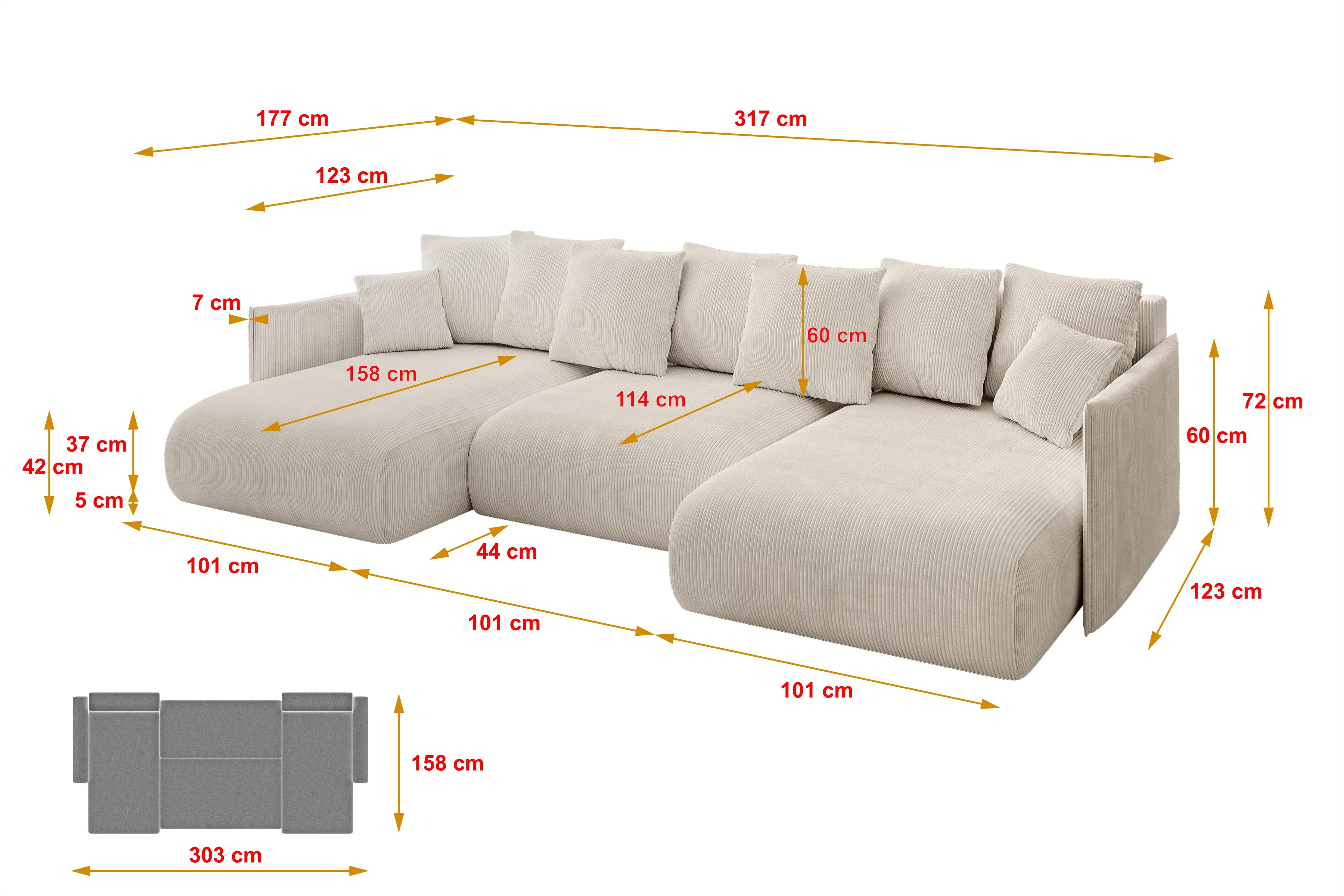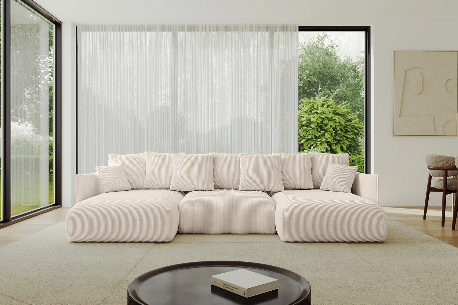 Eine moderne Wohnlandschaft mit Schlaffunktion ist ein vielseitiges Möbelstück für jedes Zuhause. Unsere stilvolle Wohnlandschaft kombiniert Funktionalität mit Ästhetik und bietet höchsten Komfort beim Sitzen, Liegen und Schlafen. Die großzügige U-Form ist ideal für weitläufige Wohnbereiche und schafft eine luxuriöse Atmosphäre für jede Gelegenheit. Diese Schlafcouch bietet reichlich Platz für die ganze Familie und verwandelt sich bei Bedarf schnell in ein komfortables Gästebett.