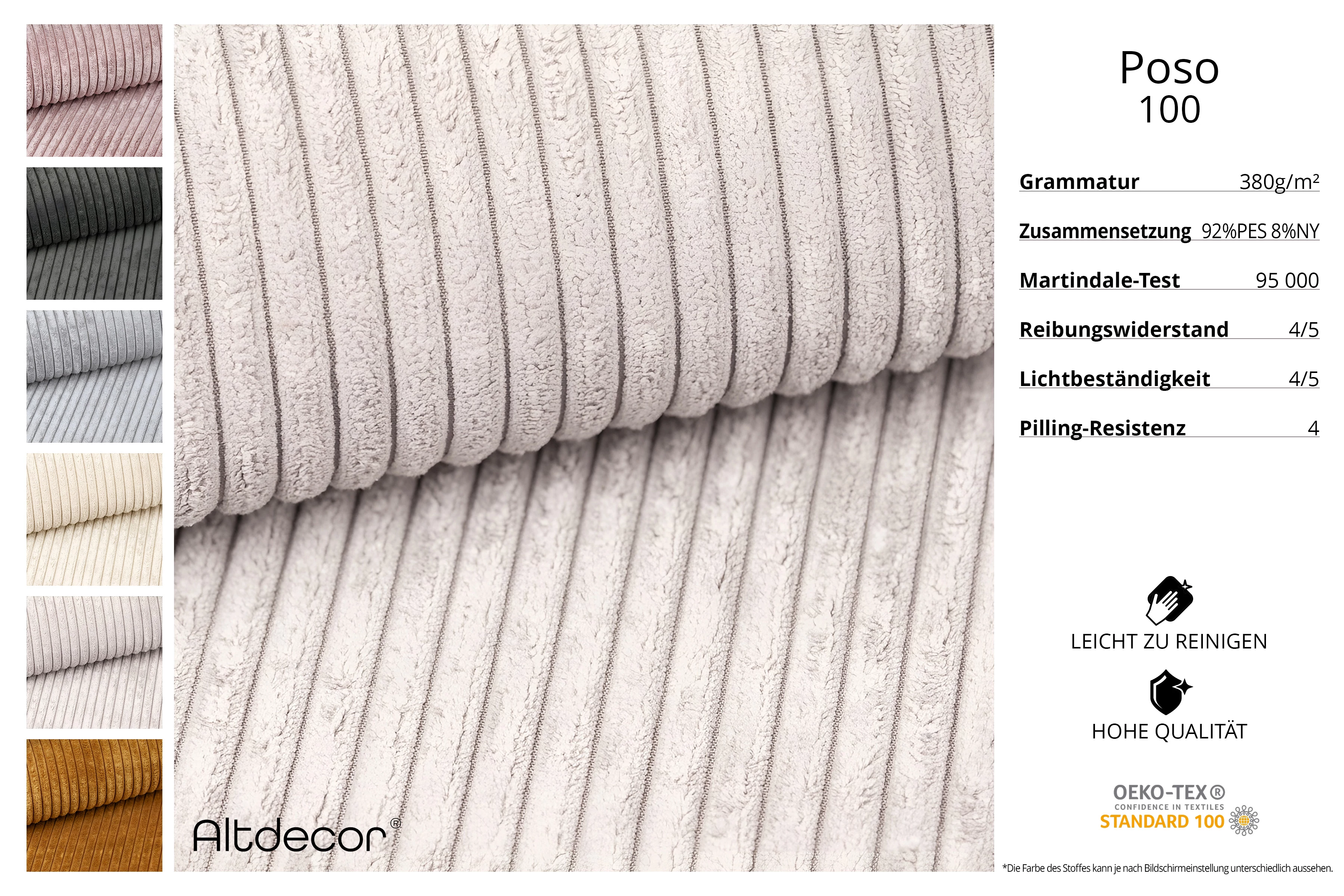 Dank der bequemen Kissen ist das Sofa ideal, um entspannte Stunden mit Familie oder Freunden zu genießen. Eine robuste Grundlage aus Möbelplatte und Massivholz garantiert die notwendige Stabilität des gesamten Möbelstücks. Die gemütliche Wohnlandschaft ist mit einem praktischen Bettkasten ausgestattet, perfekt zum Verstauen von Bettwäsche oder Decken – so bleibt Ihr Wohnzimmer stets ordentlich und aufgeräumt.