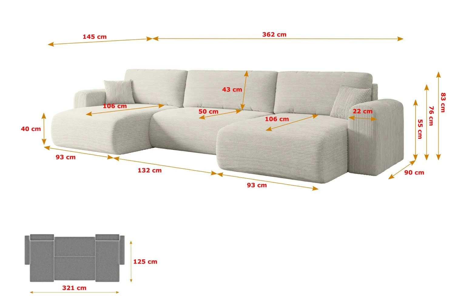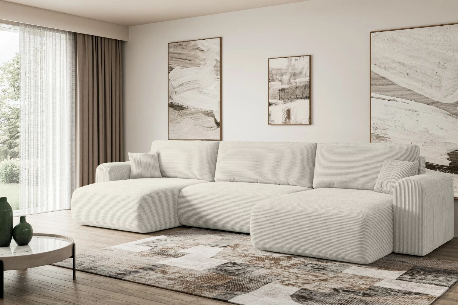 Eine moderne Wohnlandschaft mit Schlaffunktion ist ein vielseitiges Möbelstück für jedes Zuhause. Unsere stilvolle Wohnlandschaft kombiniert Funktionalität mit Ästhetik und bietet höchsten Komfort beim Sitzen, Liegen und Schlafen. Die großzügige U-Form ist ideal für weitläufige Wohnbereiche und schafft eine luxuriöse Atmosphäre für jede Gelegenheit. Diese Schlafcouch bietet reichlich Platz für die ganze Familie und verwandelt sich bei Bedarf schnell in ein komfortables Gästebett.