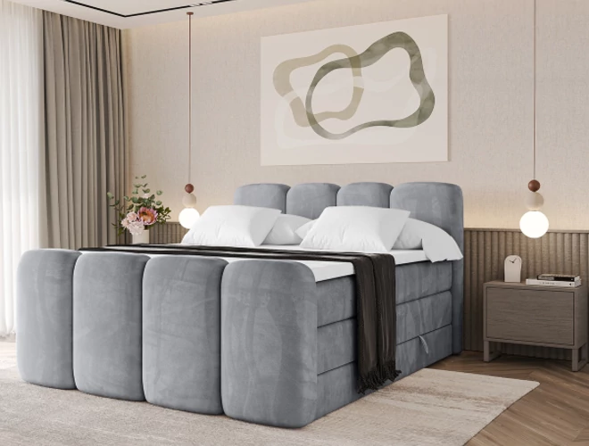 Beispiel: Boxspringbett NINA-Z KING, Stoff: Hellgrau – Monolith 84 (Martindale-Test: 100 000, Pilling-Resistenz: 5)