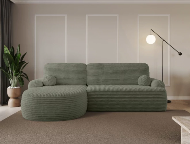 Beispiel: Ecksofa LIRA-L, Stoff: Olivgrün – Tilia 37 (Lichtbeständigkeit: 5)