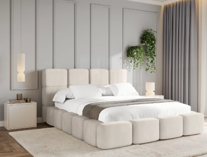 Beispiel: Polsterbett NATA, Stoff: Beige – Casablanca 2301 (leicht zu reinigen, tierfreundlich, OEKO-TEX® STANDARD 100)